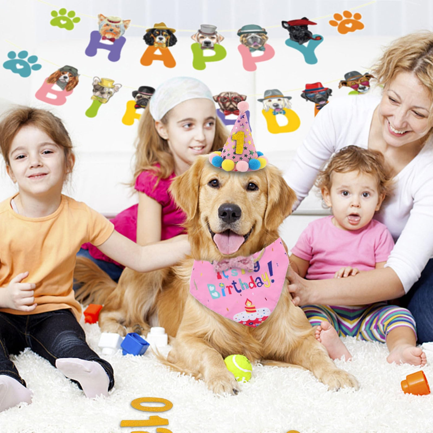 Dog Birthday Hat Bandana Party Decorations, Reusable Dog First Birthday Supplies With Banner Bowtie Numbers Crown, Cute 1St Larg