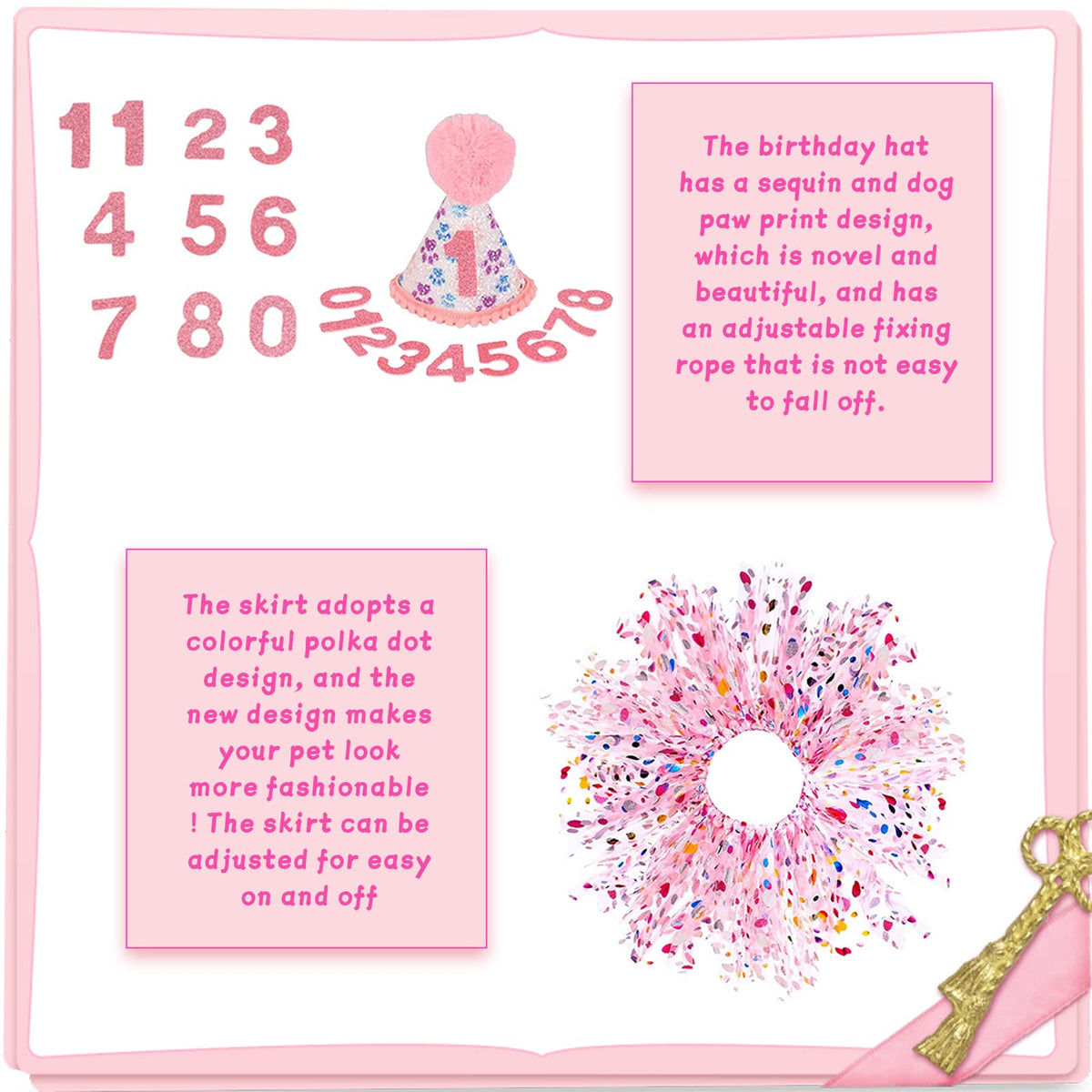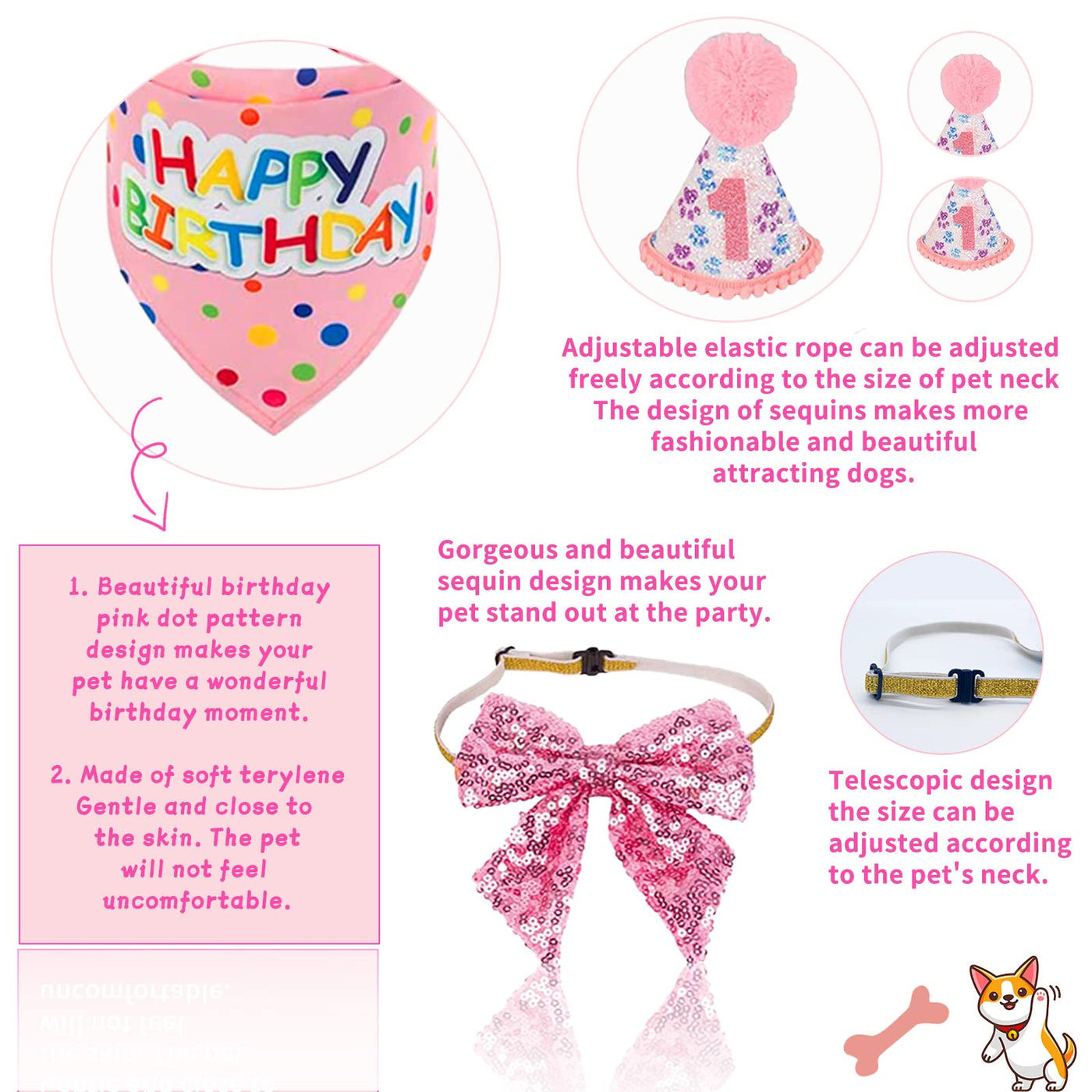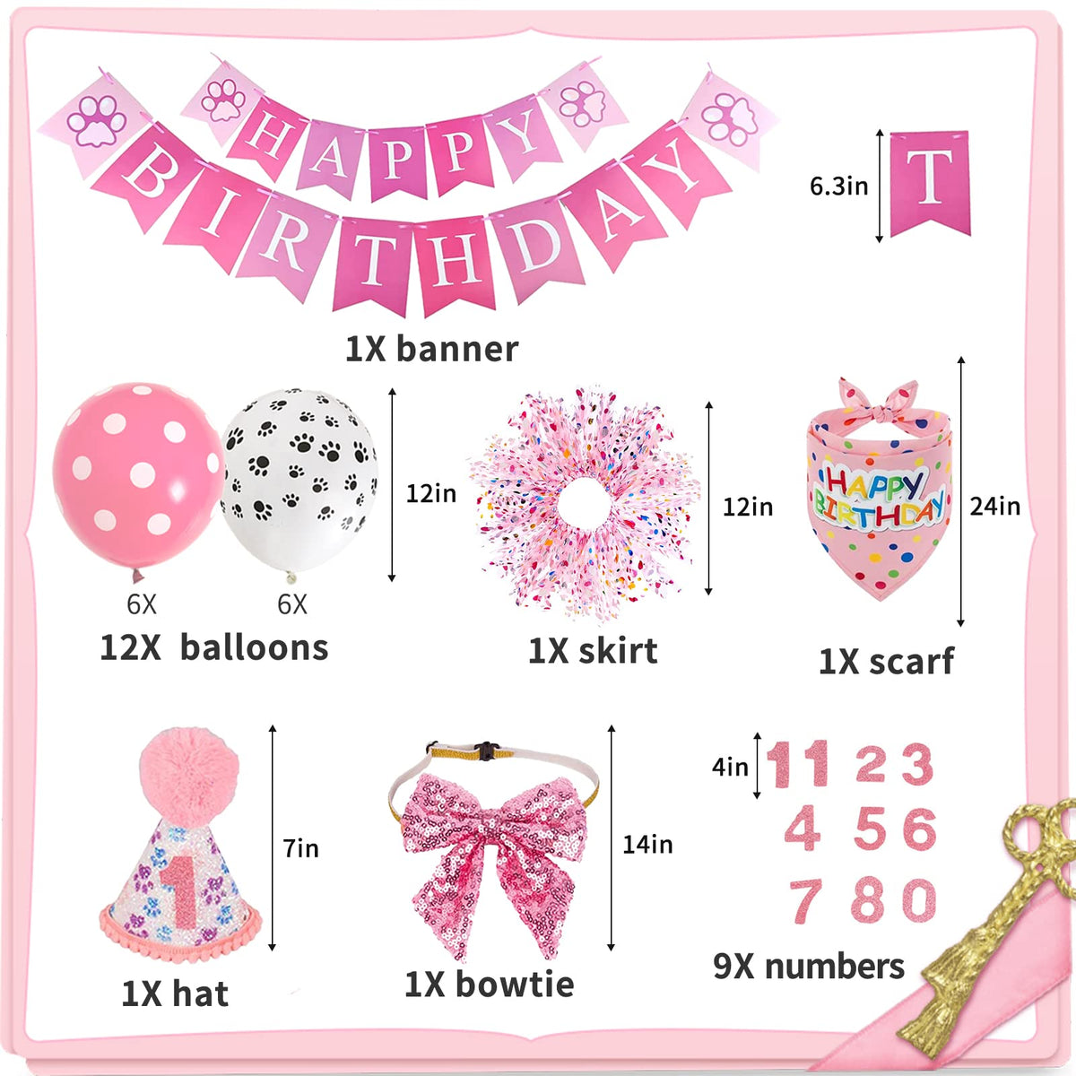 Dog Birthday Party Supplies - Bandana Hat, Red Bowtie, Tutu Skirt for Girl Dog Decorations