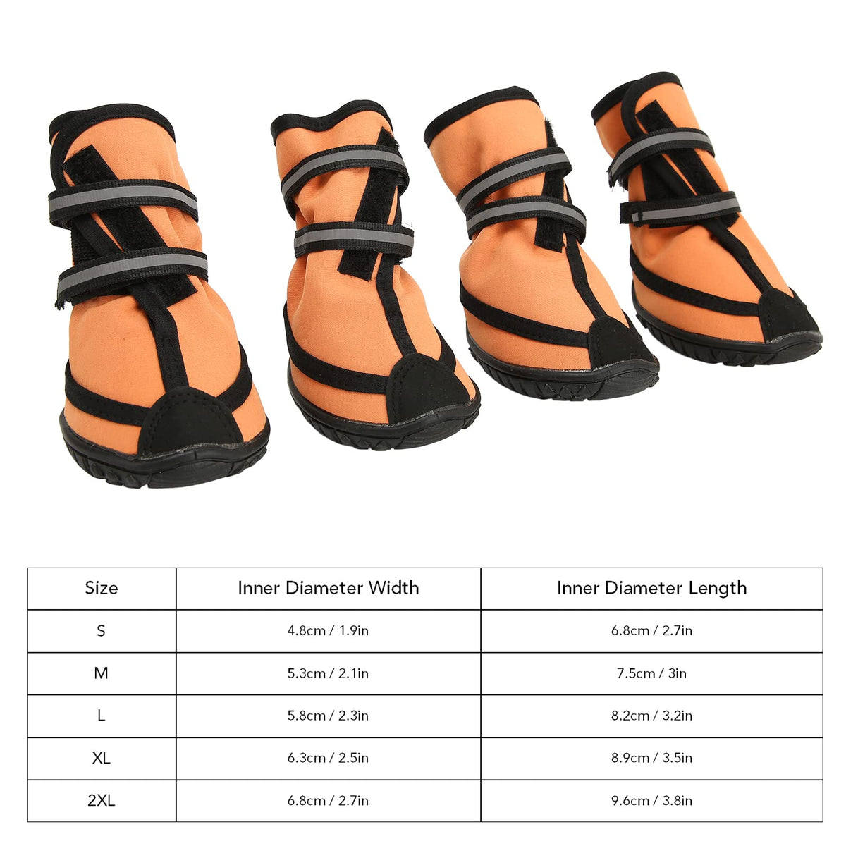 1. Anti Slip And Practical: The Non Slip, Sturdy Sole Provides Great Grip And Stability, Allowing Your Pet To Stand And Move Better On Glossy Floors. Great For Hiking, Backpacking, Camping, Trail Running And Other Indoor And Outdoor Activities!2. Paw Protection: Waterproof Dog Shoes Cover The Toe Area With Abrasion Resistant Rubber That Can Fully Keep Your Dog'S Paws From Sharp Pricks, Hot Pavement, Hard Rocks, Muddy Roads, Etc.3. Adjustable Straps: Dog Boots Are Easy To Put On, And With Two Adjustable Straps Allowing For Custom Elasticity, The Shoes Can Be Secured Firmly, Even When Your Dog Is Running Or Chasing.4. Reflective Design: Outdoor Dog Shoes' Reflective Trim And Reflective Stripes Enhance Visibility At Night Or In Low Light Conditions, Keeping Your Friend Safe And You Can Easily Spot Them During Outdoor Activities.5. Comfortable And Breathable: Dog Shoes Are Lightweight And Soft, Making Them Comfortable To Wear For Long Periods Of Time. The Soft Rubber Soles Bend Easily And Do Not Restrict Your Dog'S Movement.Specification:Item Type: Dog Bootsmaterial: Rubber, Four Sided Elasticpacking List:4 X Dog Bootsnote:Please Allow 0-0.2Cm/0-0.08In Error For Manual Measuremen