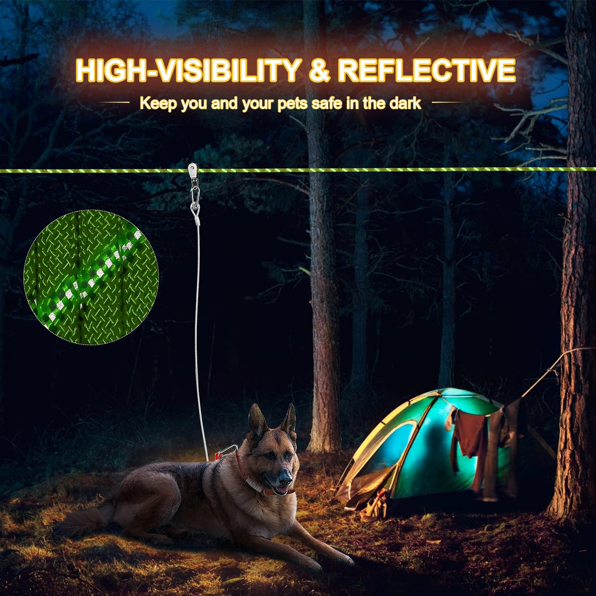 Dog Camping Essentials 50Ft Portable Overhead Trolley System Pet Camping Leash For Dogs Up To 200Lbs Dog Runner For Yard