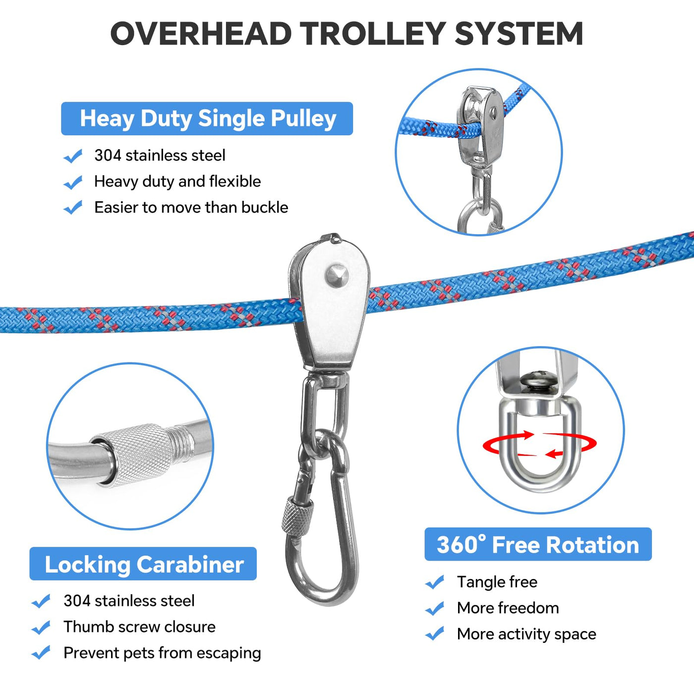 Dog Camping Essentials 50Ft Portable Overhead Trolley System Pet Camping Leash For Dogs Up To 200Lbs Dog Runner For Yard Blue