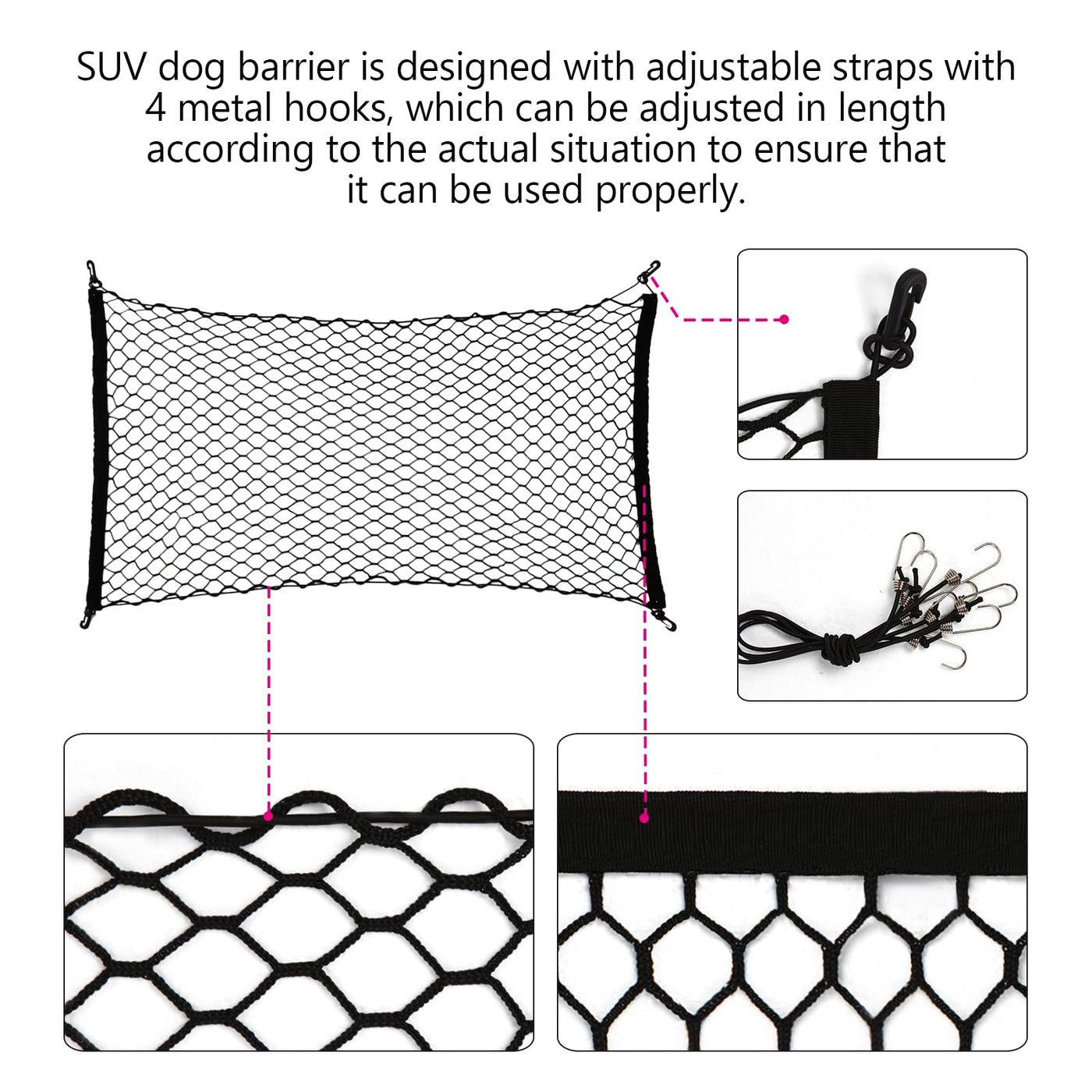 Dog Car Net Barrier For Suv - Pet Car Divider Back Seat Barrier Net, Easy To Install And Remove,Adjustable Car Dog Divider For T