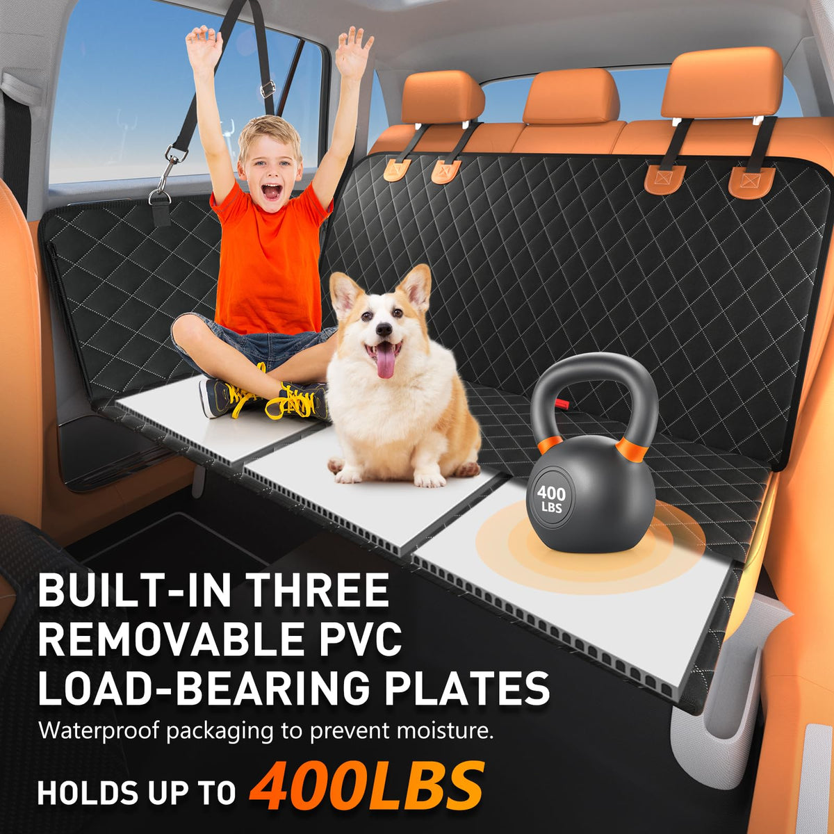 Strong Load-bearing Capacity:The back seat dog seat cover is equipped with three 3 thicker PVC load-bearing boards which have been tested to bear up to 400Ibs suitable for large dogs or multiple dogs. The foldable design adds versatility