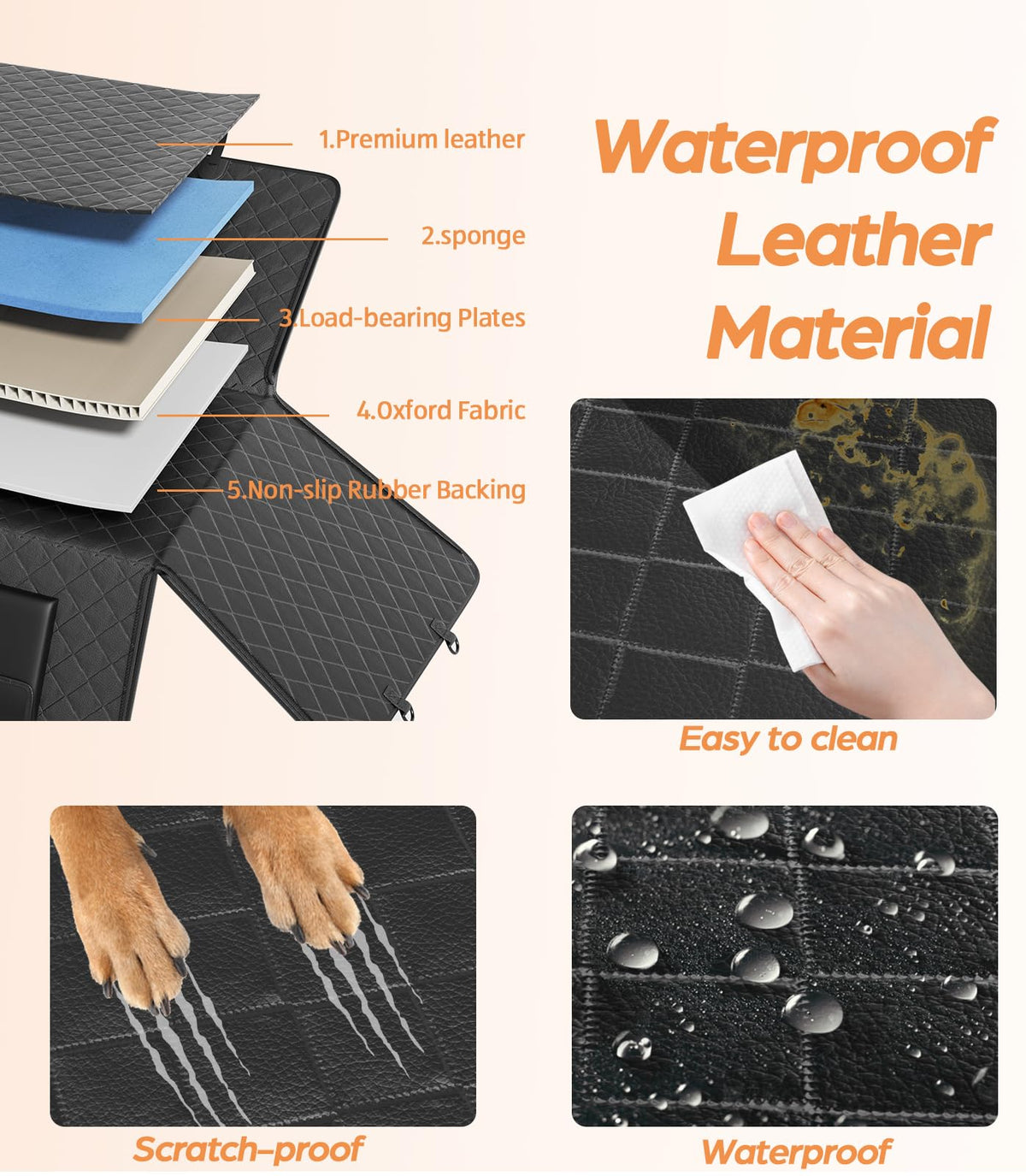 Dog Car Seat Cover For Back Seat, Waterproof Hard Bottom Back Seat Extender For Dogs, Dog Hammock For Car With Support Bar Holds