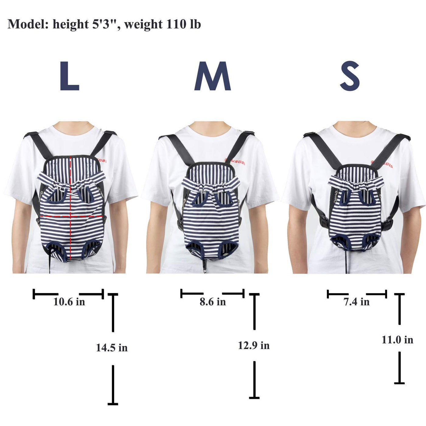 Q: What size pet is suitable for the Dog Carrier Comfortable Legs Out Front Backpack?A: The Dog Carrier Comfortable Legs Out Front Backpack is designed for small pets, typically small dogs and cats. It's recommended to choose a size larger than your pet's bust size to ensure a comfortable fit.