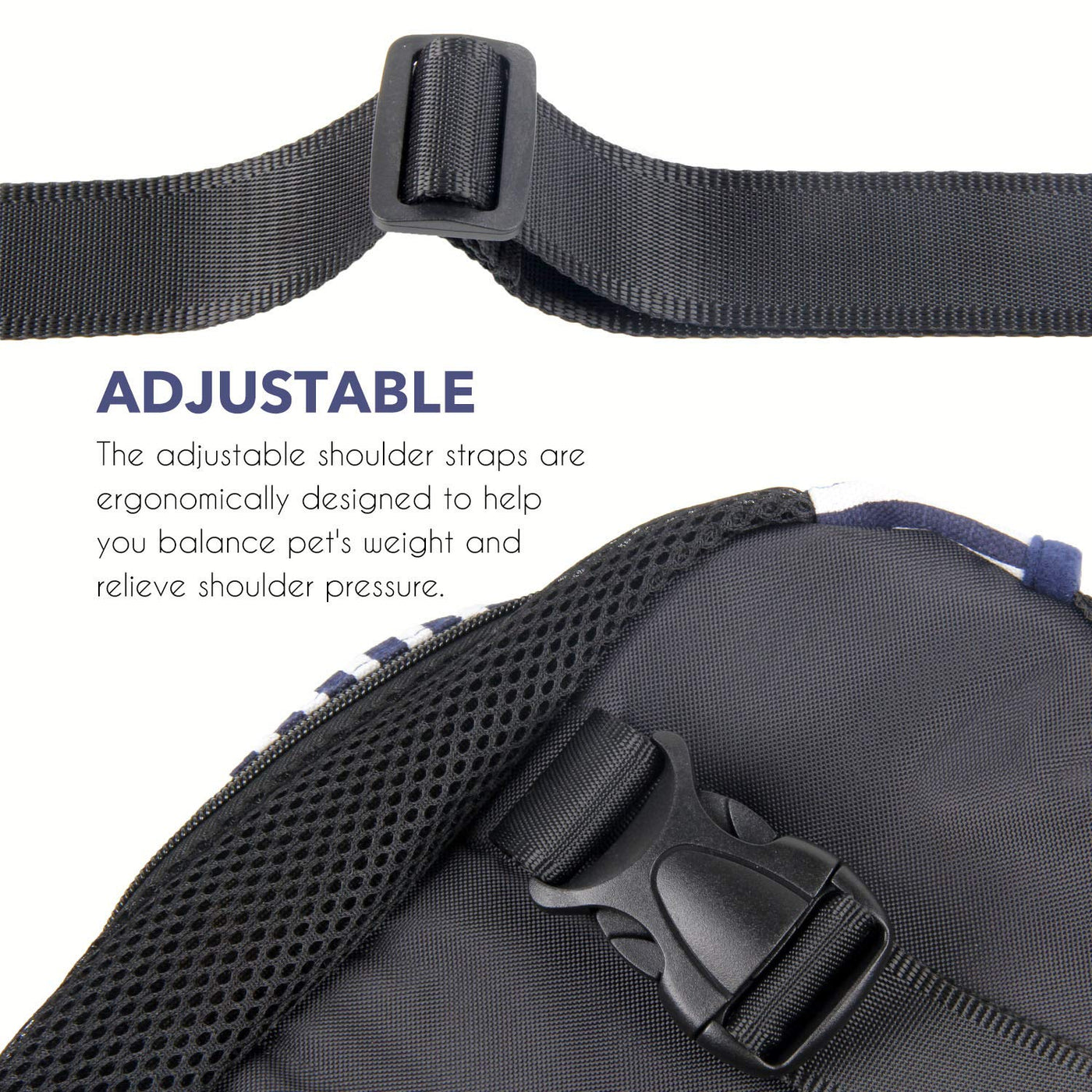 Q: Is the pet carrier backpack easy to use and adjust?A: Yes, the carrier features adjustable straps that allow you to fit it comfortably on your back or front. The easy-access side zips and velcro elastic make it simple to put on and take off.