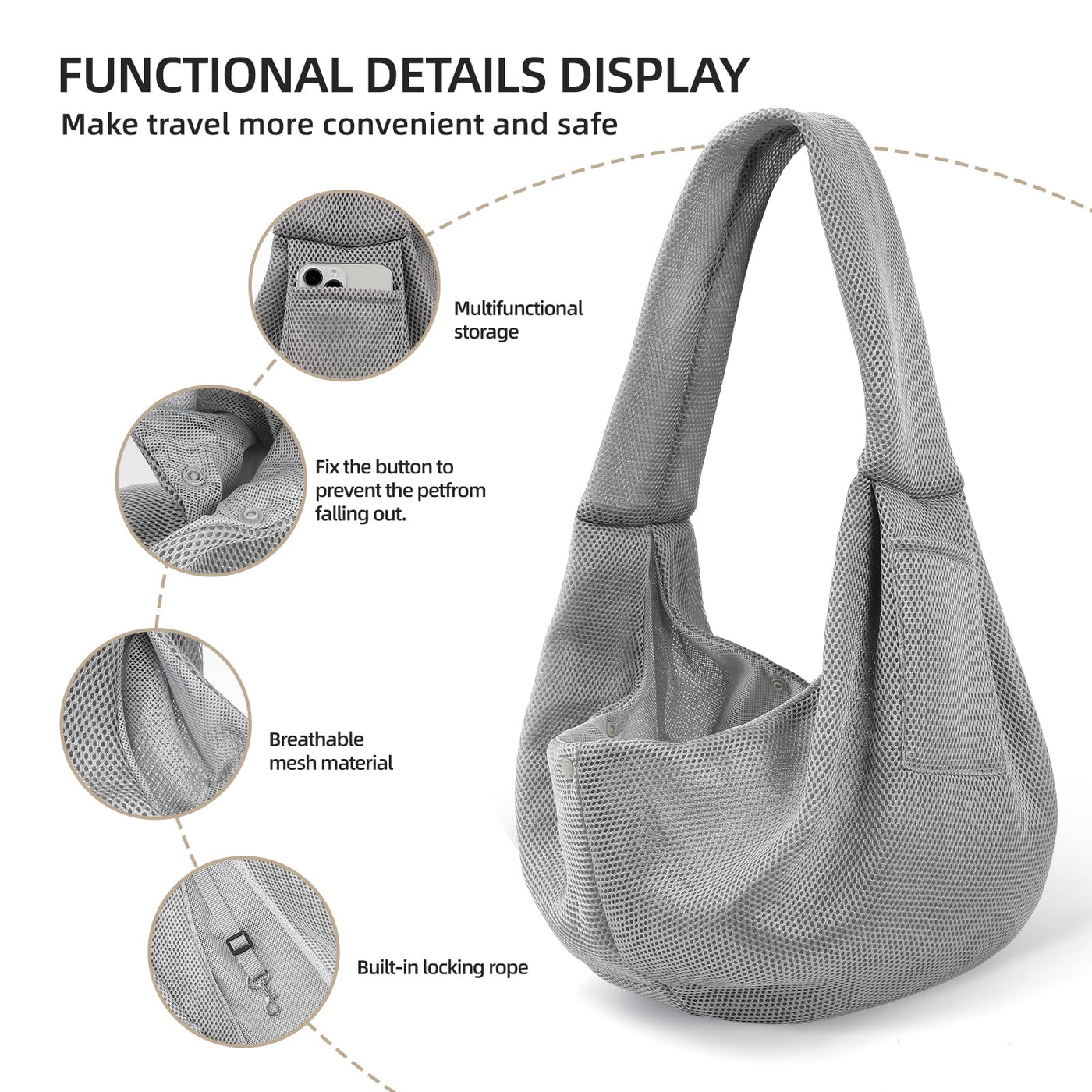 Dog Carrier Sling - Ultra Breathable Reversible Puppy Carrier Purse with Storage Pocket, Travel Safety Harness, Hand-Free Dog Sling Carrier for Carry Small Dogs and Cats, Dog and cat Harness