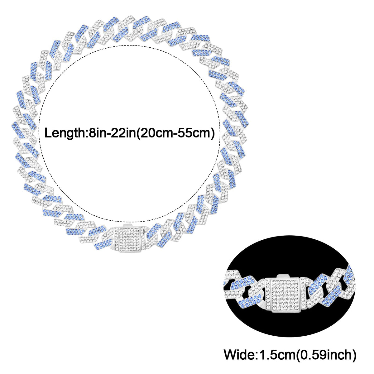 Dog Chain Collar Glitter Diamond Cuban Collar Walking Metal Chain Collar With Design Secure Buckle Pet Metal Link Chain Jewelry
