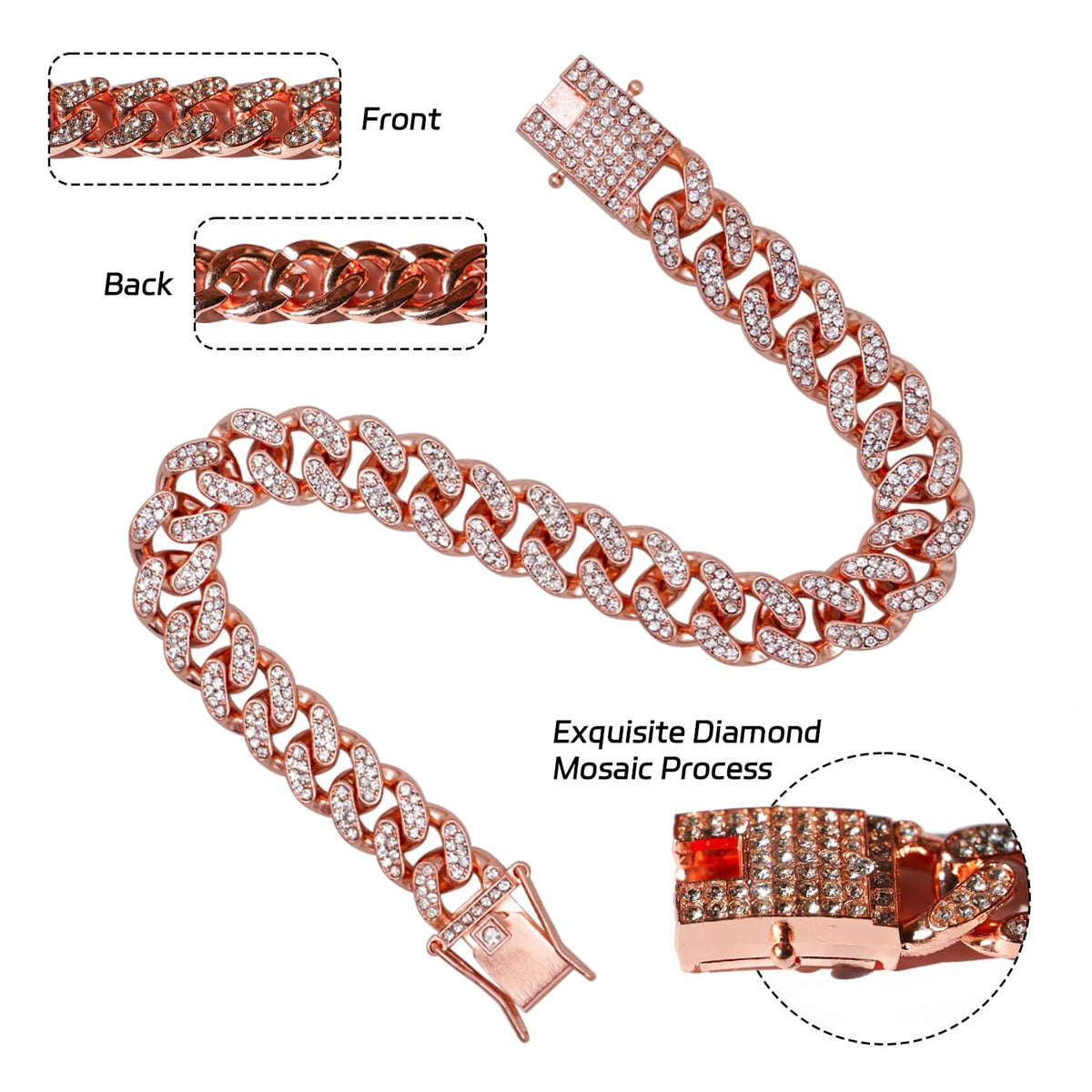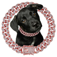 Dog Chain Diamond Collar Rose Gold Walking Metal Chain 12 Mm Wide Necklace With Secure Buckle Pet Cuban Style Collar Jewelry Acc