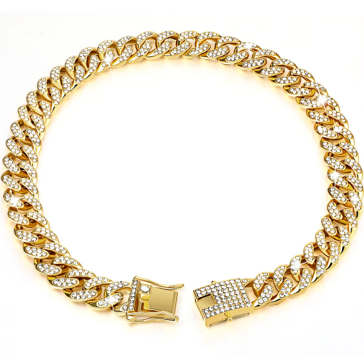 Dog Chain Diamond Collar Walking Metal Chain Collar With Design Secure Buckle, Pet Collar Jewelry Accessories For Small Medium Large Dogs Cats (Gold, 18 Inch)