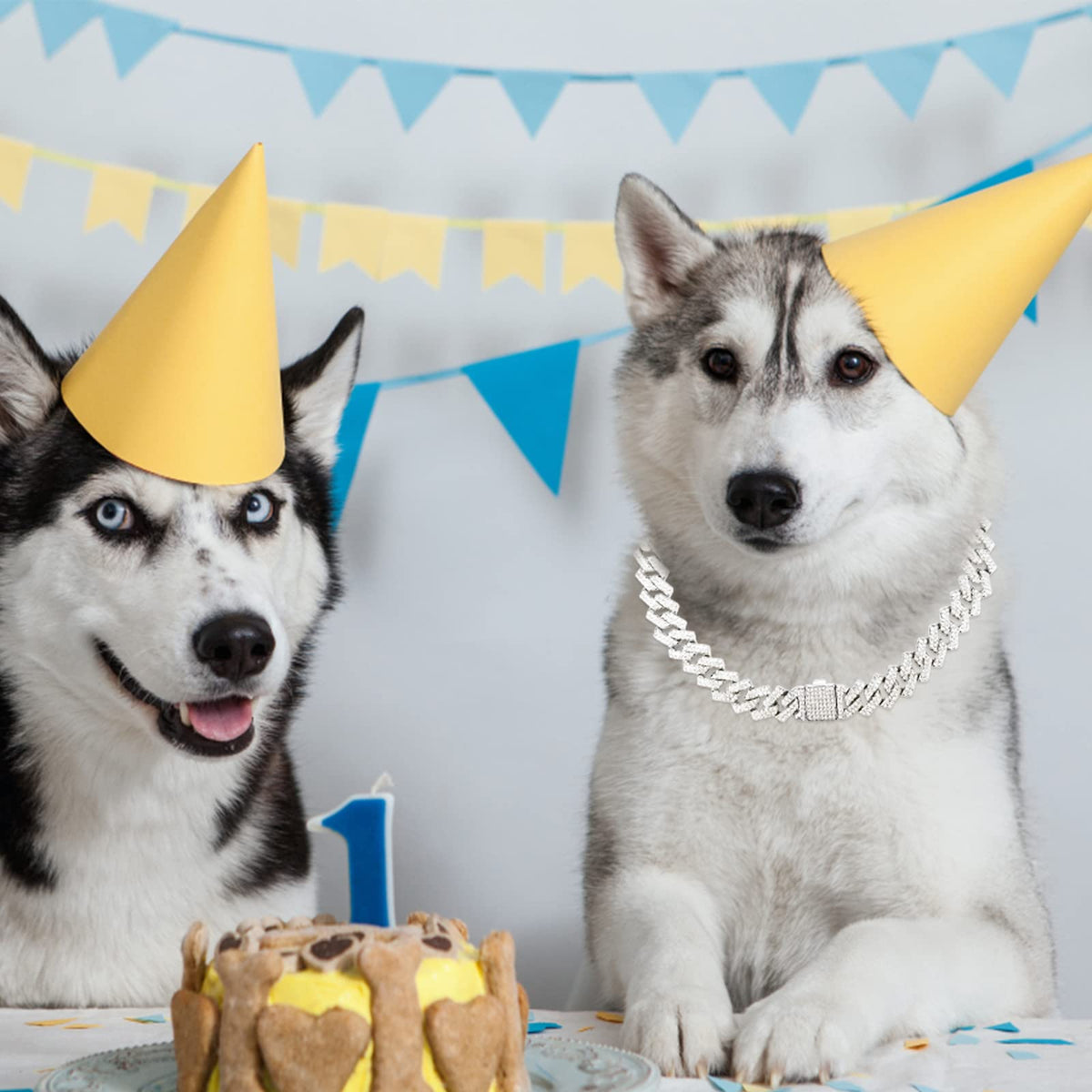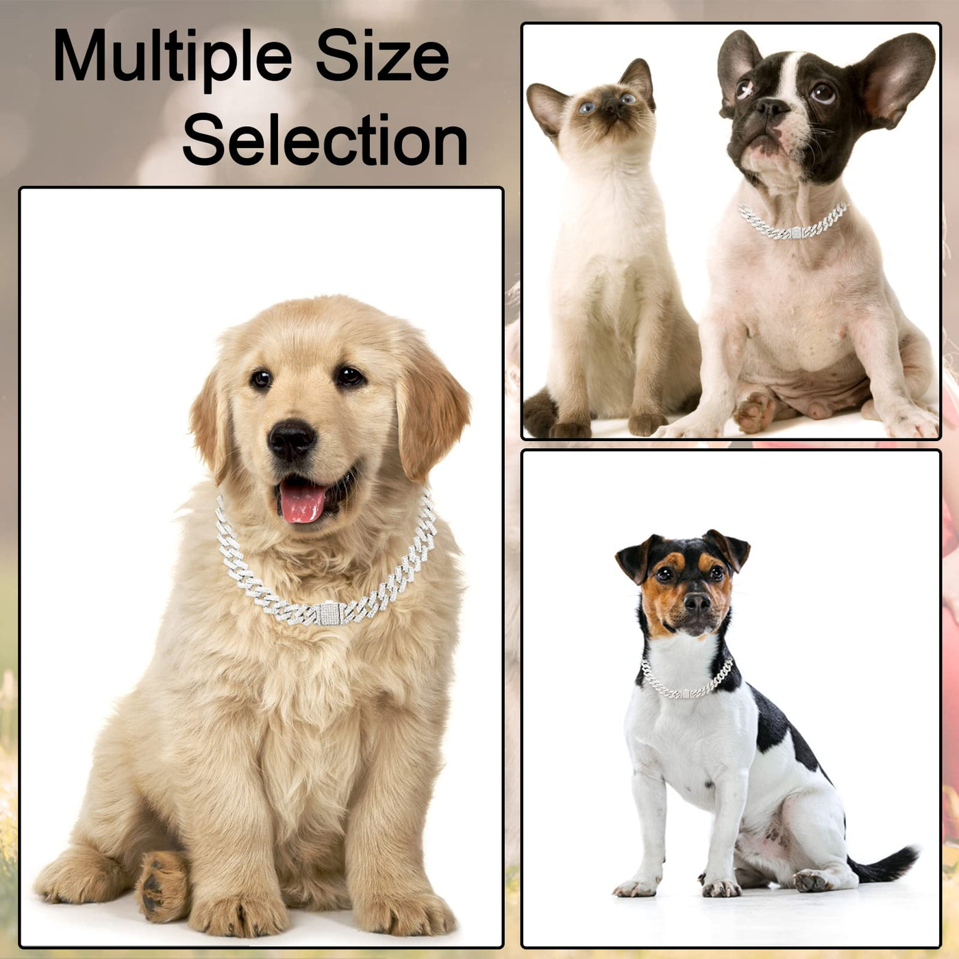 Dog Chain Collar Glitter Diamond Cuban Collar Walking Metal Chain Collar With Design Secure Buckle Pet Metal Link Chain Jewelry Accessories For Small Medium Large Dogs Cats