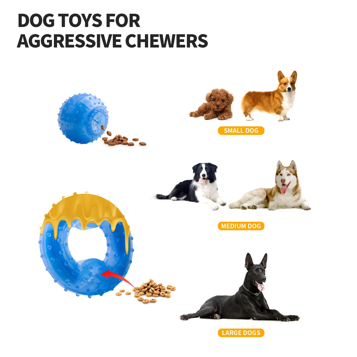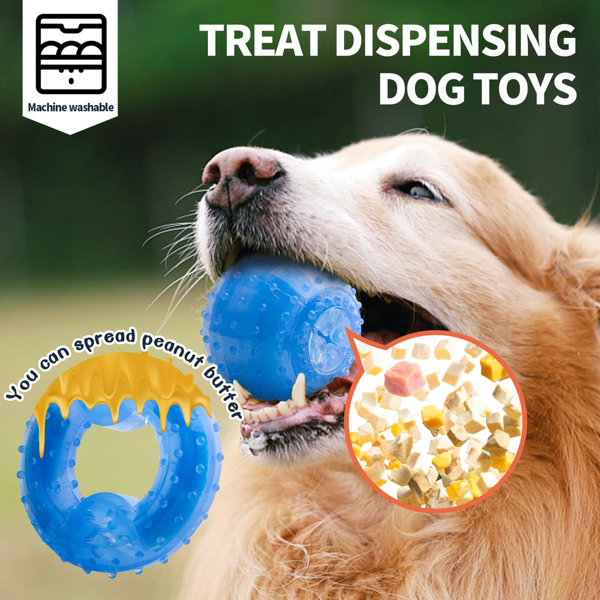 Dog Chew Toys For Aggressive Chewers, Puppy Teething Ring And Dog Ball, Treat Dispensing Dog Toys, Frozen Tough Puppy Toys Set