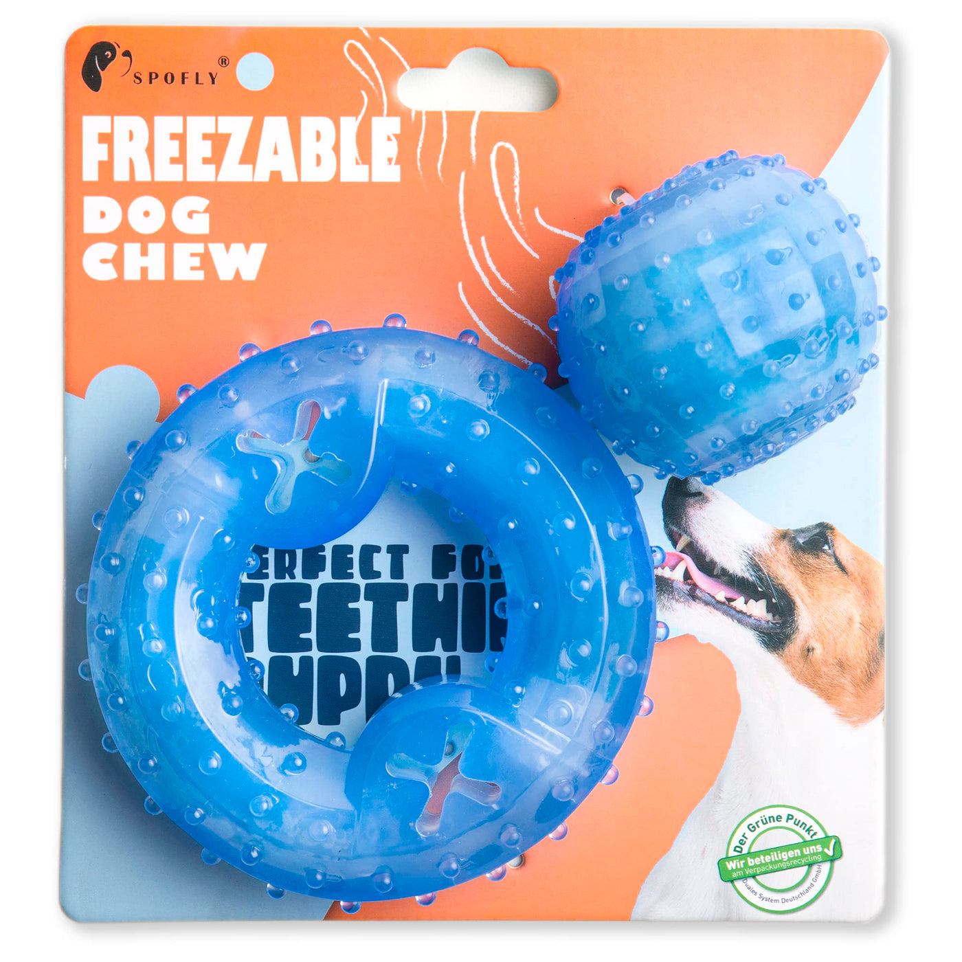 Puppy Chew Toys for Teething SPOFLY dog chew toy helps satisfy dogs' instinctual needs while providing mental stimulation. Healthy play is important for dogs' physical and mental development, emotions and behavior. By encouraging healthy play and satisfying instinctual needs, this treat dispensing puzzle toy helps solve chewing, separation anxiety, teething, boredom, weight management, crate training, digging and barking.Puppies