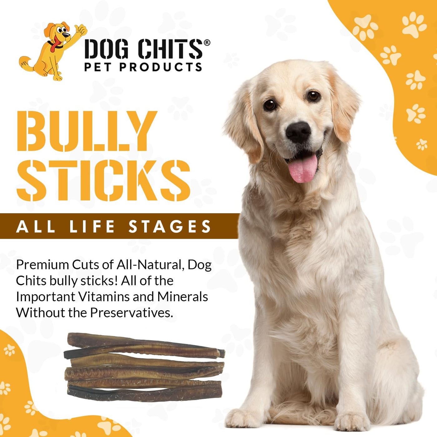 Dog Chits Bully Sticks for Dogs and Puppies | 12-inch, 6 Pack | Natural Healthy Long Lasting Chew for Large and Small Dogs Prote