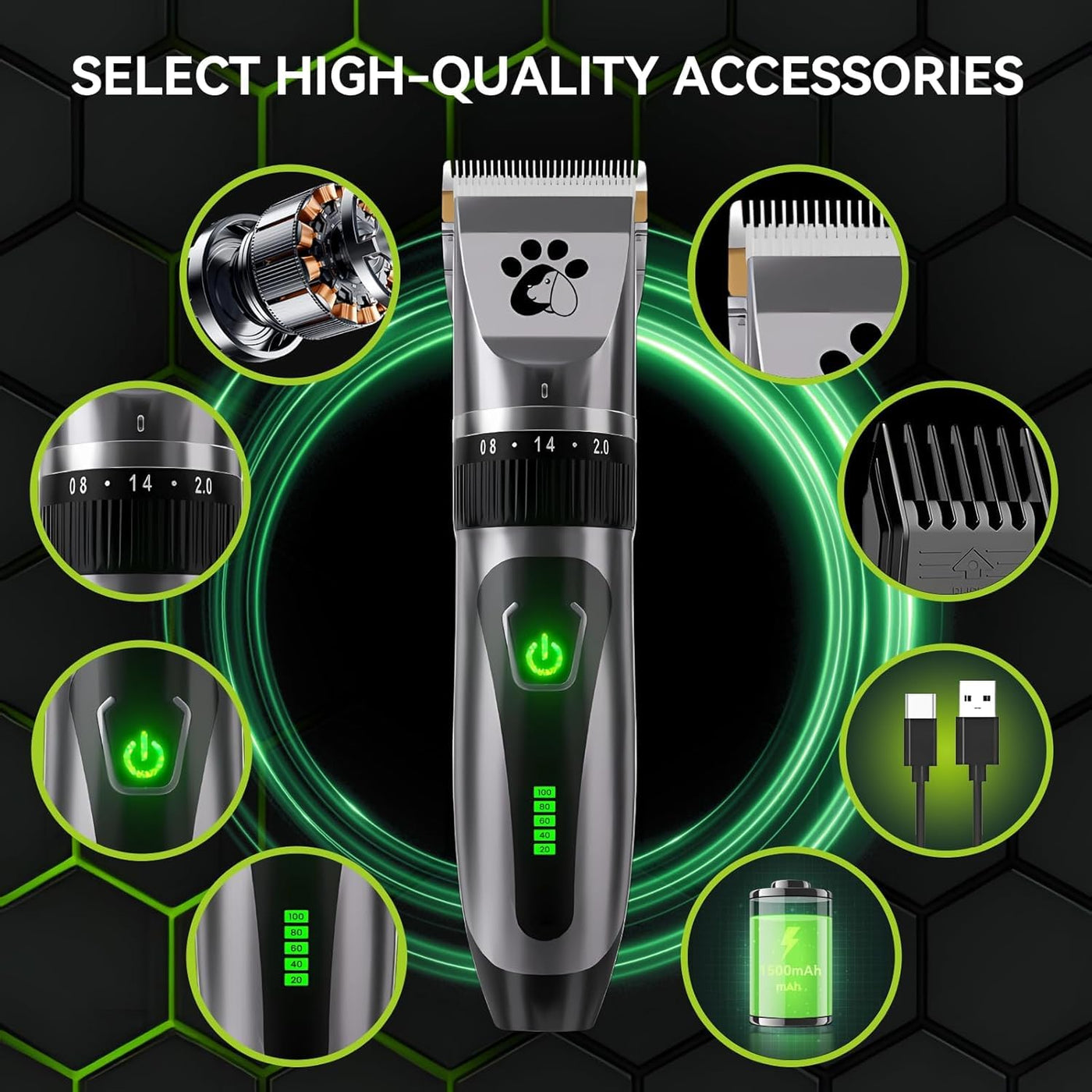 Dog Clippers Cordless, Professional Cat Trimmer, 2-Speed Low Noise Dog Grooming Kit, Pet Trimmer For Small Large Thick Hair Dogs