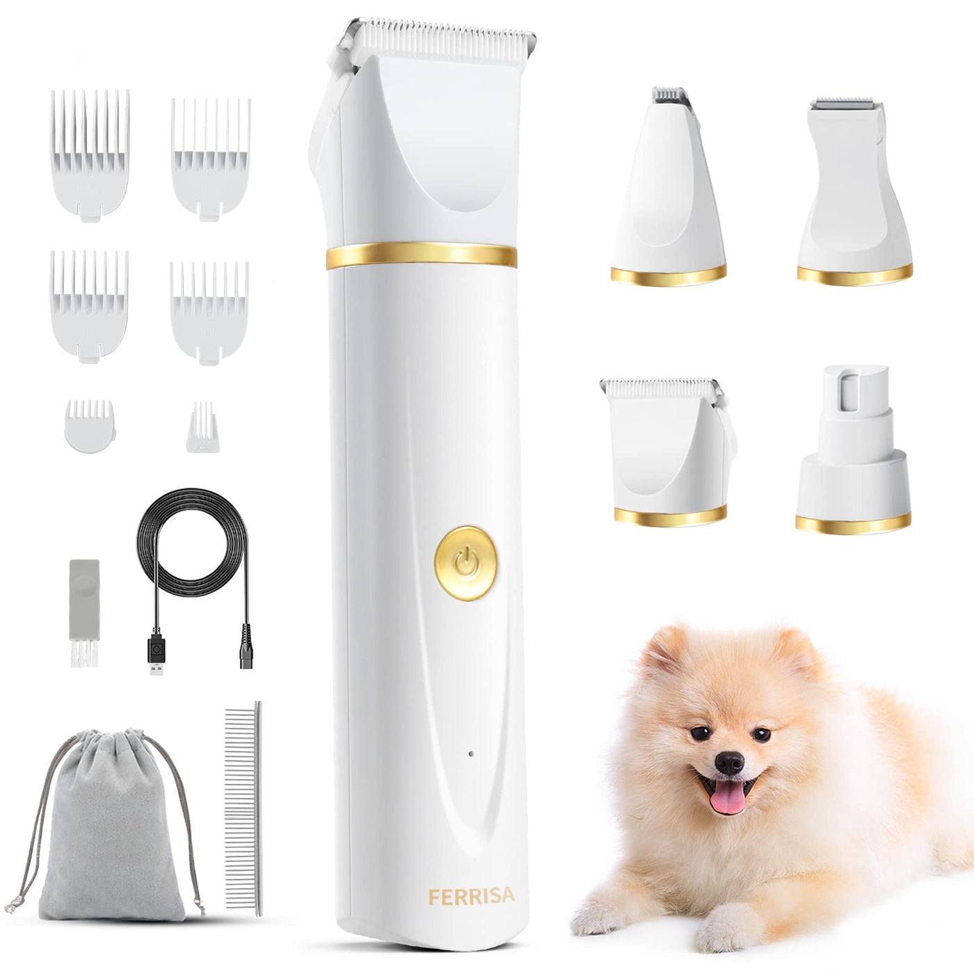 Dog Clippers For Grooming, Ferrisa Professional Cordless Dog Trimmers Grooming Kit Supplies With 3 Blade Heads, Low Noise Dog Gr