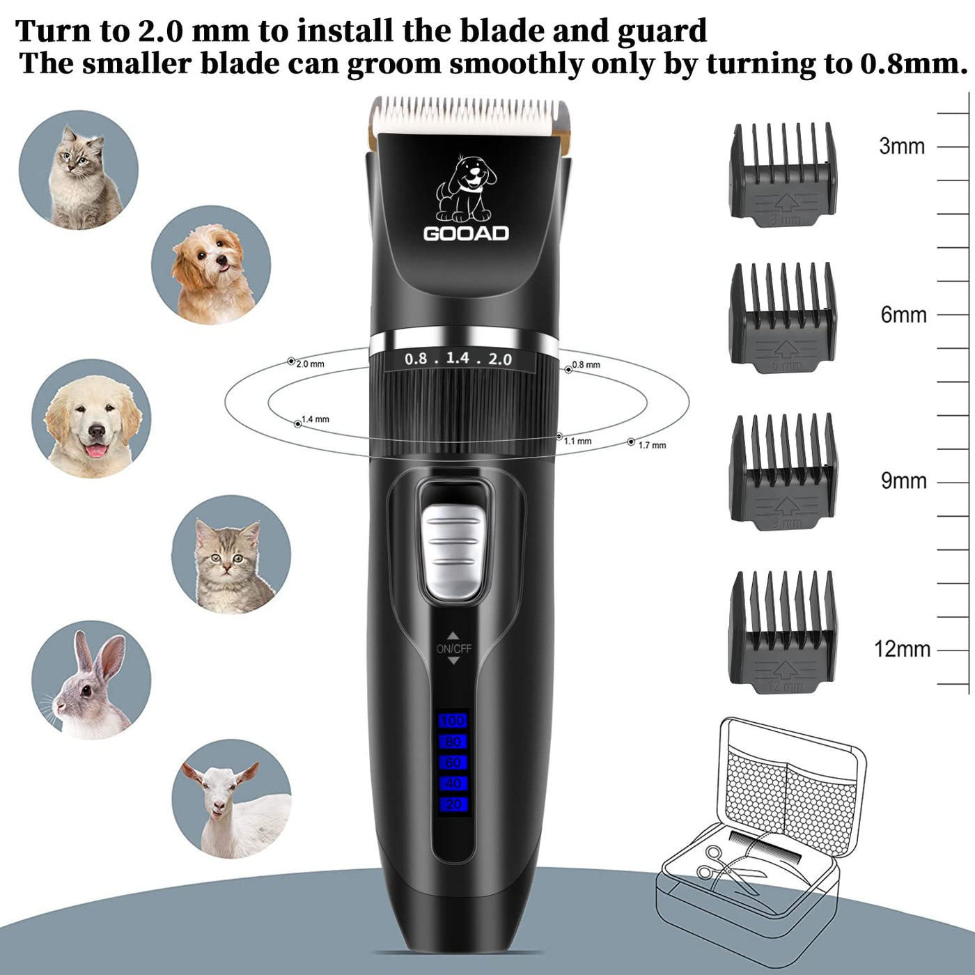 GOOAD all-in-one clipper set keeps your pets always looking good, Complete new user friendly, it's very useful both in home and profession salon use! 6 kinds of tools and 4 limiting comb, make haircut safe and easy. No more expensive bills for pet grooming, We hope our product will create an easier and happier experience both for you and your pet.