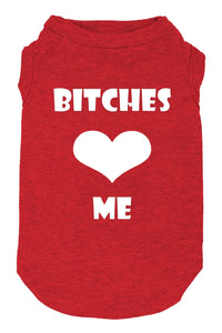 Dog Clothes Puppy T Shirt Vest Soft And Light-Weight For Small Large Dogs With 'Bitches Love Me' Slogan Prining Pet Apparel(Medi
