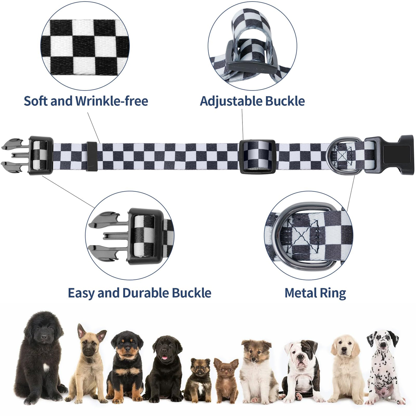 Dog Collar Adjustable Puppy Collar For Small Medium Large Dogs, Nylon Safety Collars With Leopard Print Night Visibility, Plaid