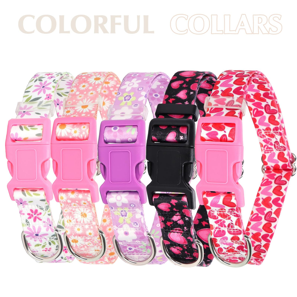 Dog Collar For Large Dogs With Love Heart Patterns For Girl & Boy Dogs, Pink Dog Collar Adjustable Nylon Collar With Quick-Relea