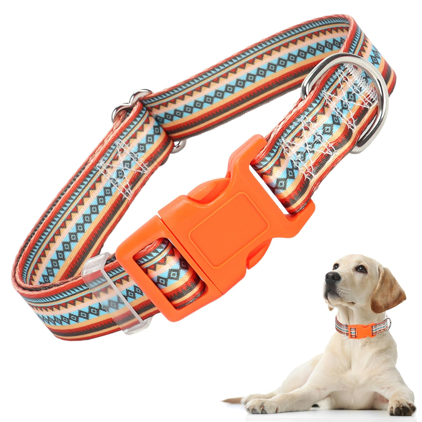 Dog Collar For Puppy Small Dogs, Orange Dog Collar With Tribal Ethnic Aztec Patterns, Adjustable Safety Nylon Dog Collars Buckle