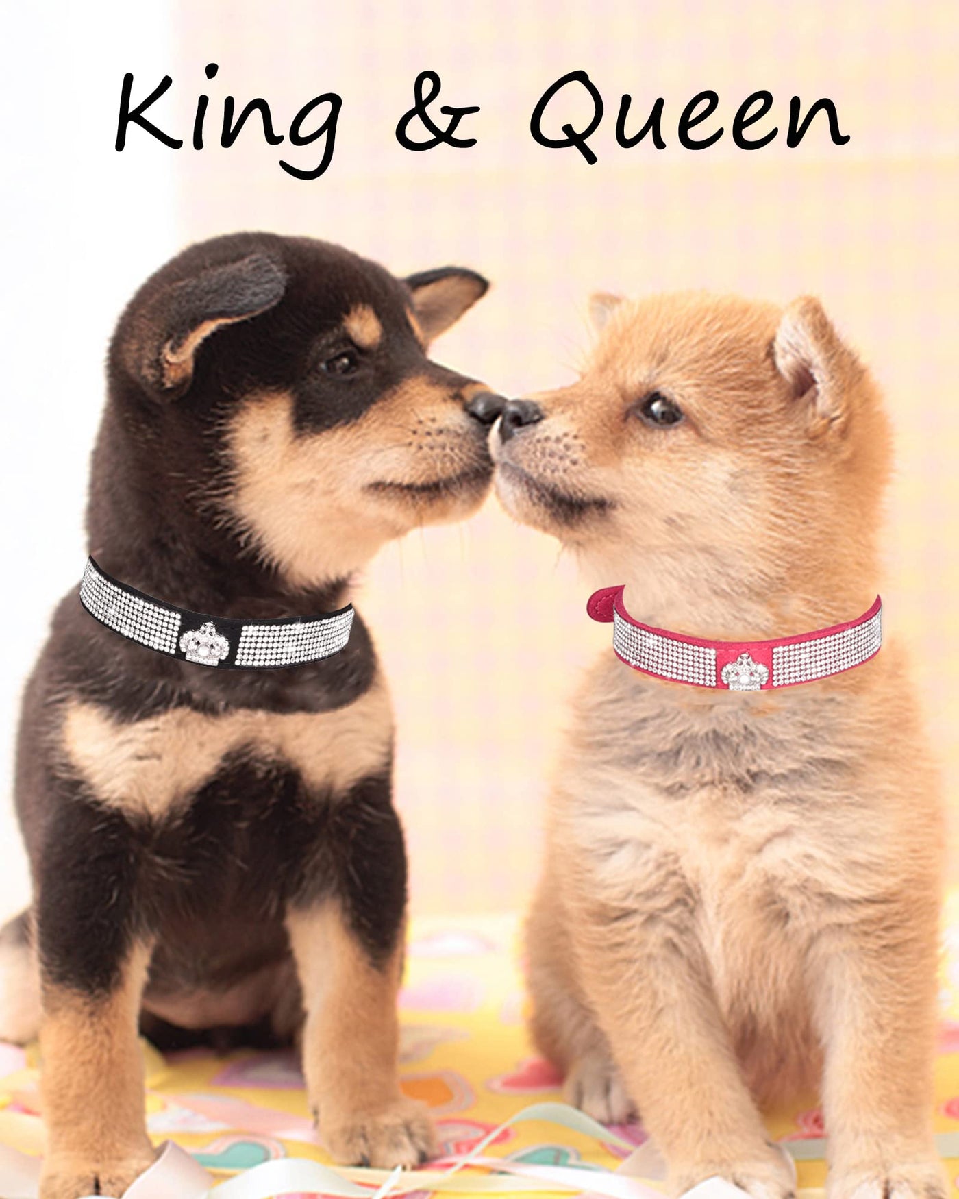 Dog Collar For Small Dogs, Adjustable Leather Suede Bling Dog Collars,Pink Dog Collar Cat Collar, Rhinestone Dog Collar (M, Blac