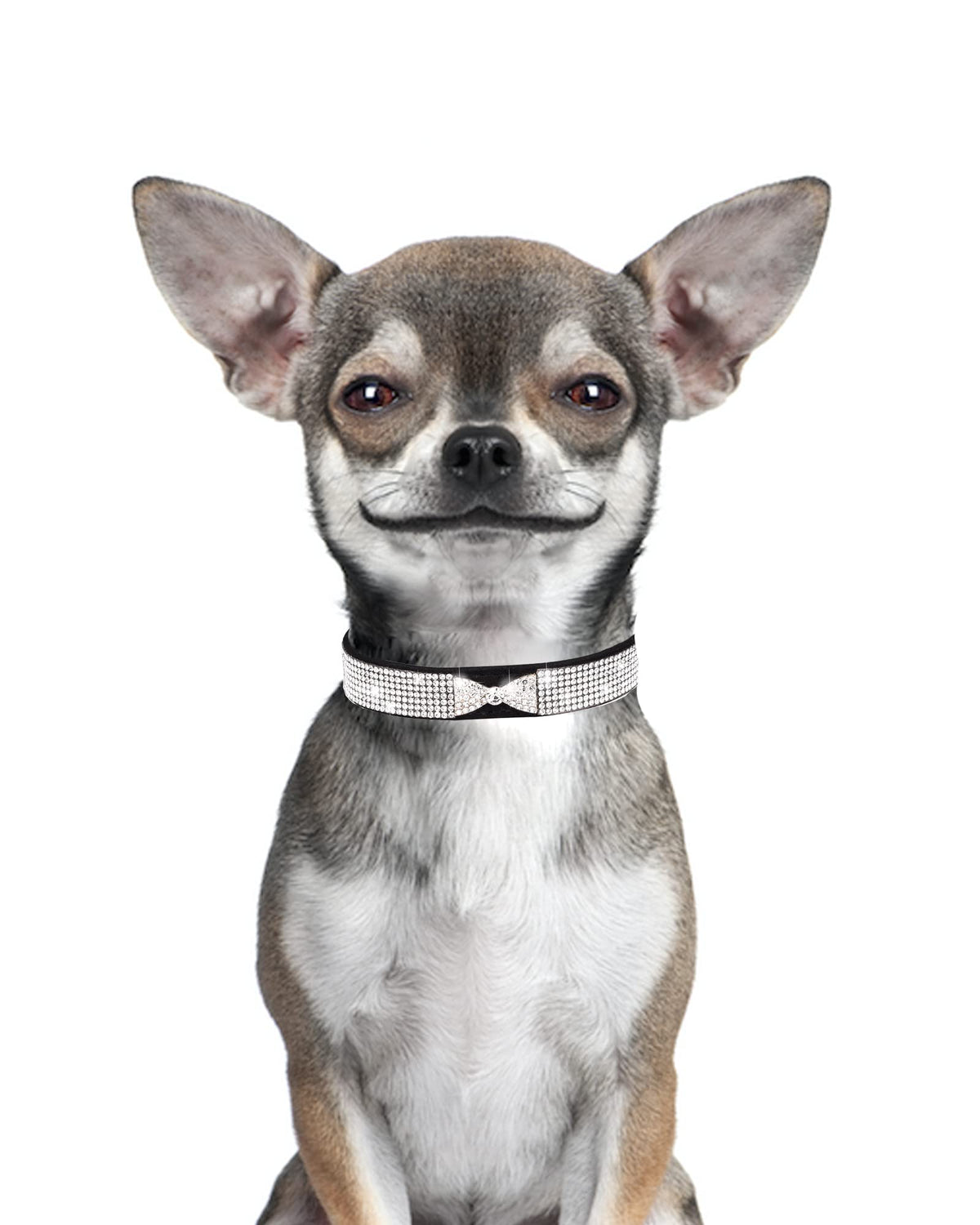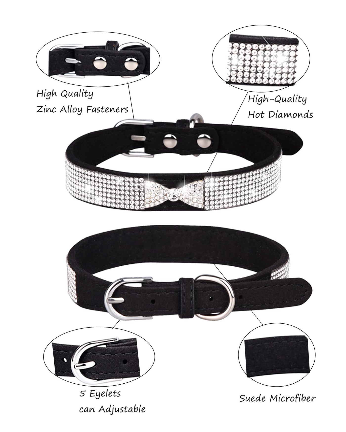 Dog Collar For Small Dogs, Adjustable Leather Suede Bling Dog Collars,Pink Dog Collar Cat Collar, Rhinestone Dog Collar (S, Blac
