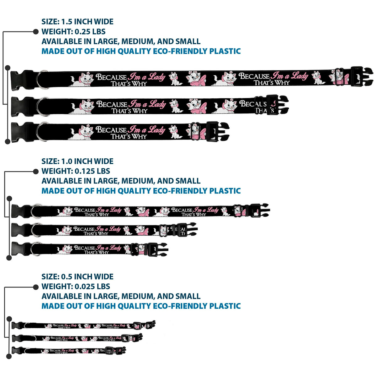Dog Collar Plastic Clip Aristocats Marie 3 Poses Because Im A Lady Thats Why Black 9 To 15 Inches 1.0 Inch Wide, 1' Wide - Fits