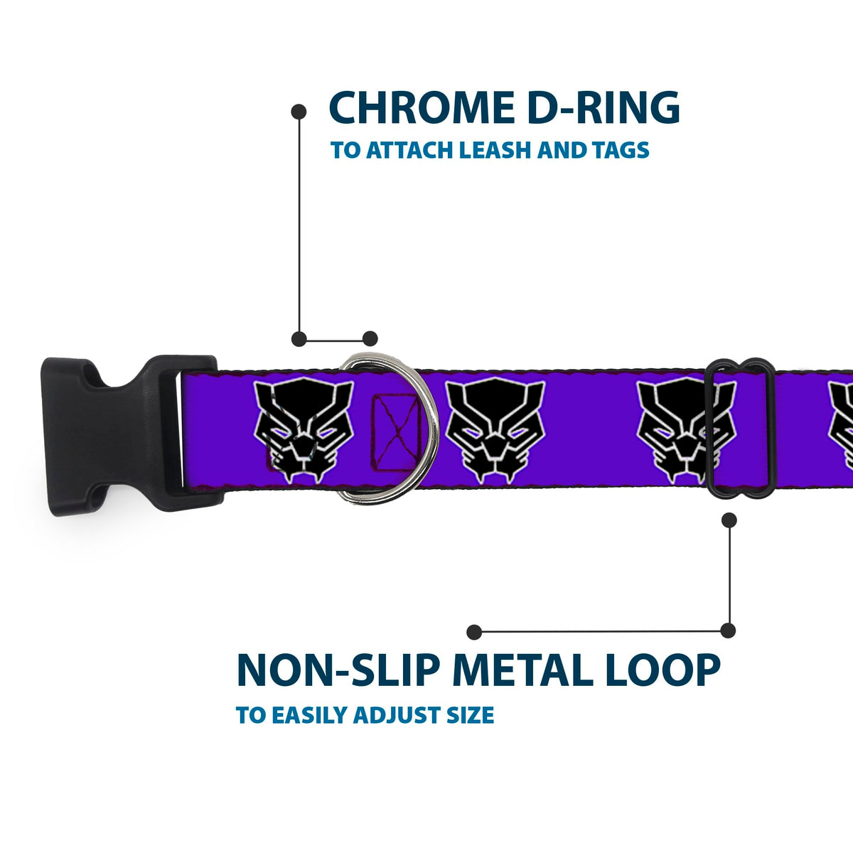 Dog Collar Plastic Clip Black Panther Avengers Icon Purple White Black 16 To 23 Inches 1.5 Inch Wide