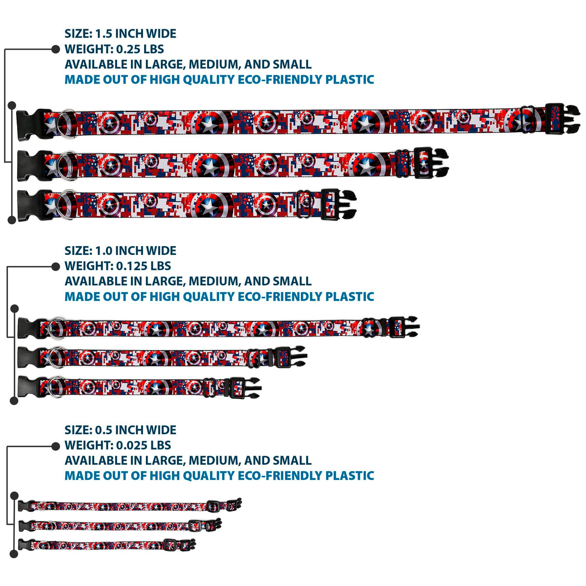 Dog Collar Plastic Clip Captain America Shield Digital Camo Blue White Red 18 To 32 Inches 1.5 Inch Wide