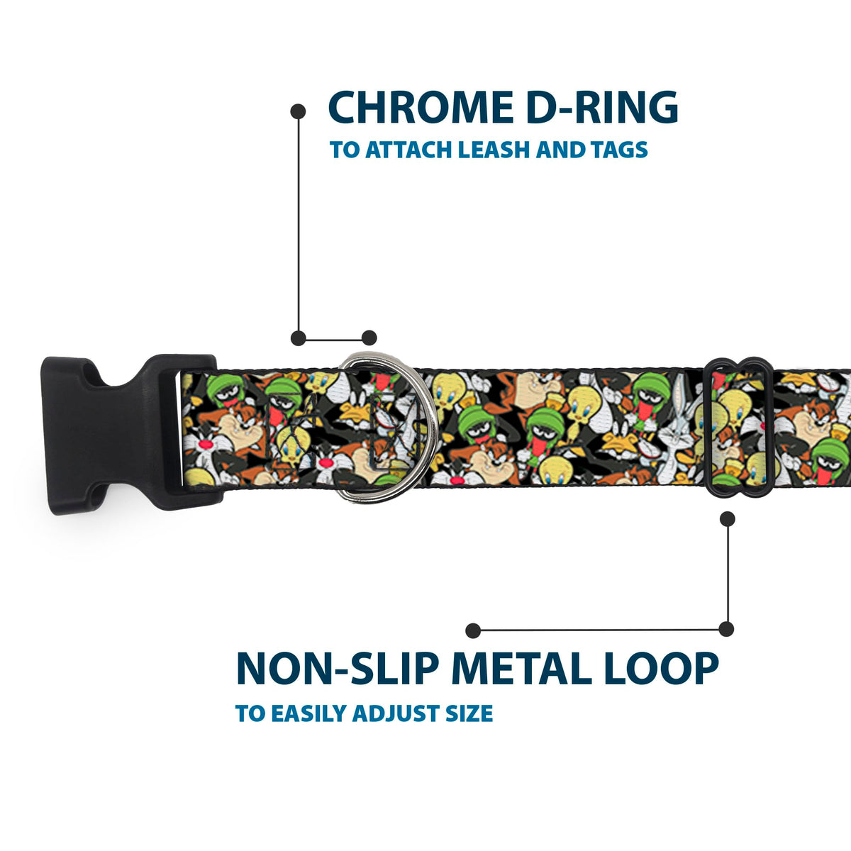 Dog Collar Plastic Clip Looney Tunes 6 Character Stacked Collage4 6 To 9 Inches 0.5 Inch Wide