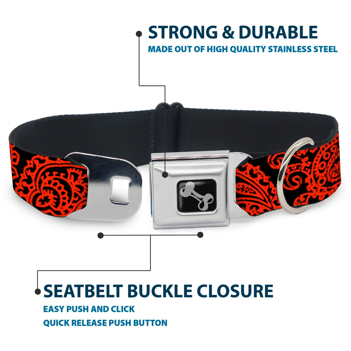 Dog Collar Seatbelt Buckle Bandana Skulls Black Orange 13 To 18 Inches 1.5 Inch Wide