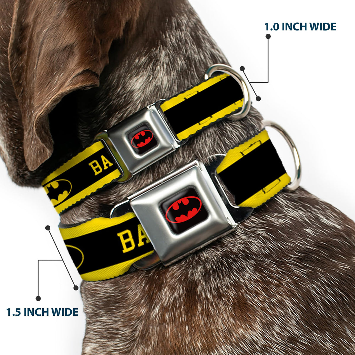 Dog Collar Seatbelt Buckle Batman Logo Stripe Yellow Black 15 To 26 Inches 1.0 Inch Wide