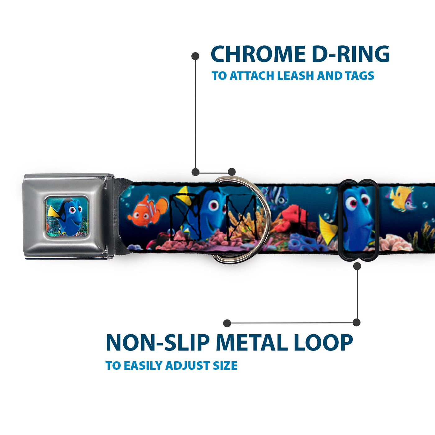 Dog Collar Seatbelt Buckle Dory Poses Friends Under The Sea 9 To 15 Inches 1.0 Inch Wide