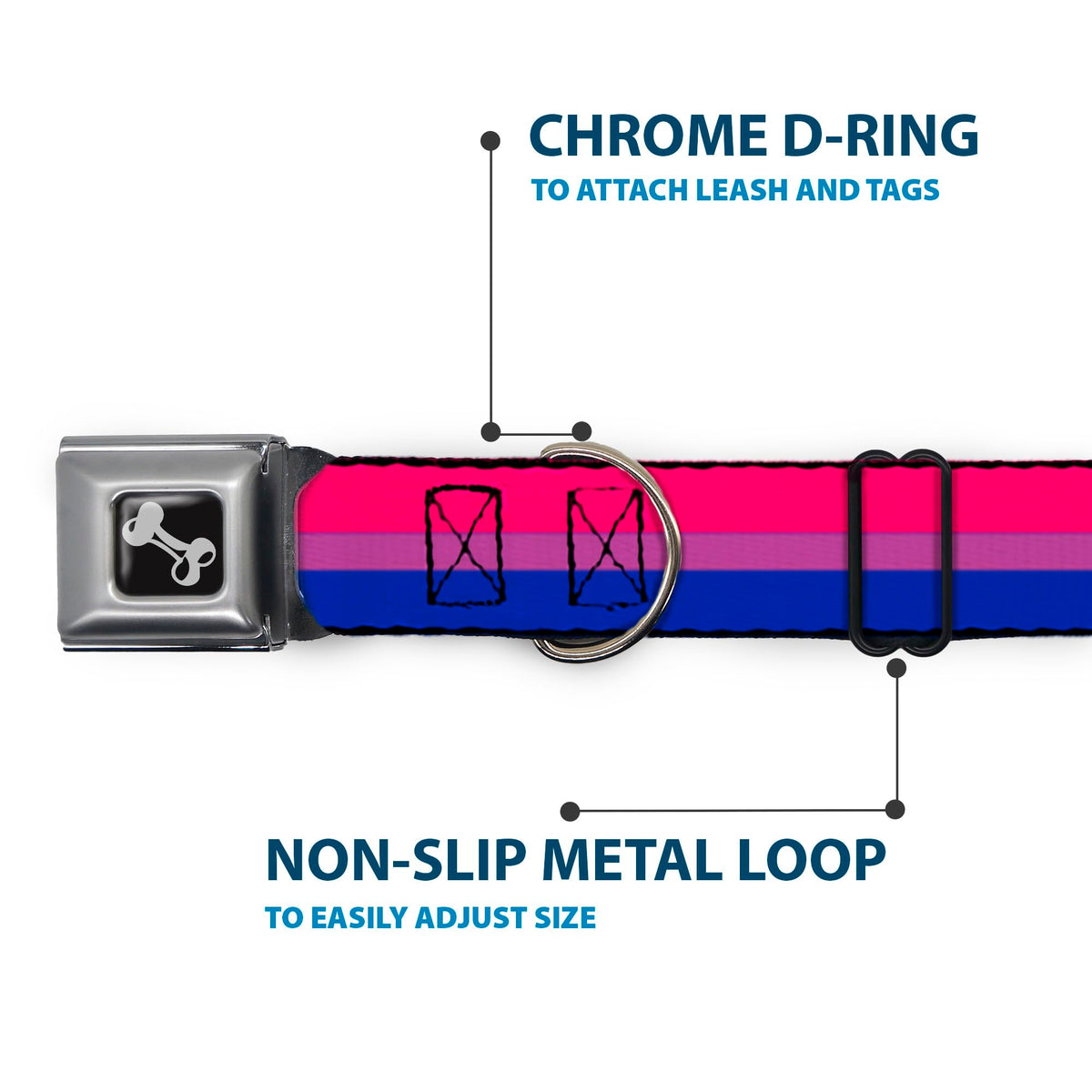 Dog Collar Seatbelt Buckle Flag Bisexual Pink Purple Blue 9 To 15 Inches 1.0 Inch Wide, Dc-W30684-S