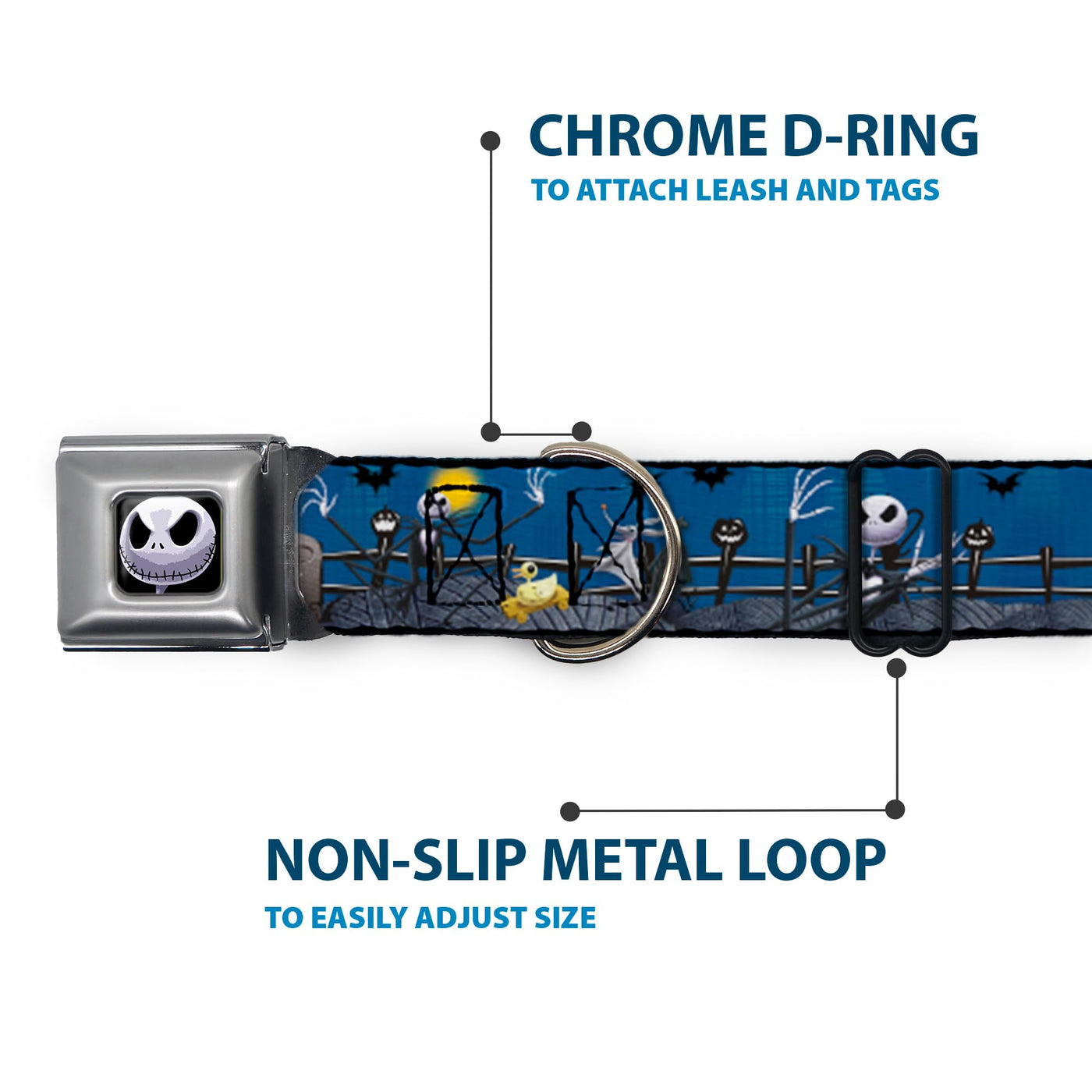 Dog Collar Seatbelt Buckle Nightmare Before Christmas Jack Zombie Duck Zero Cemetery 15 To 26 Inches 1.0 Inch Wide