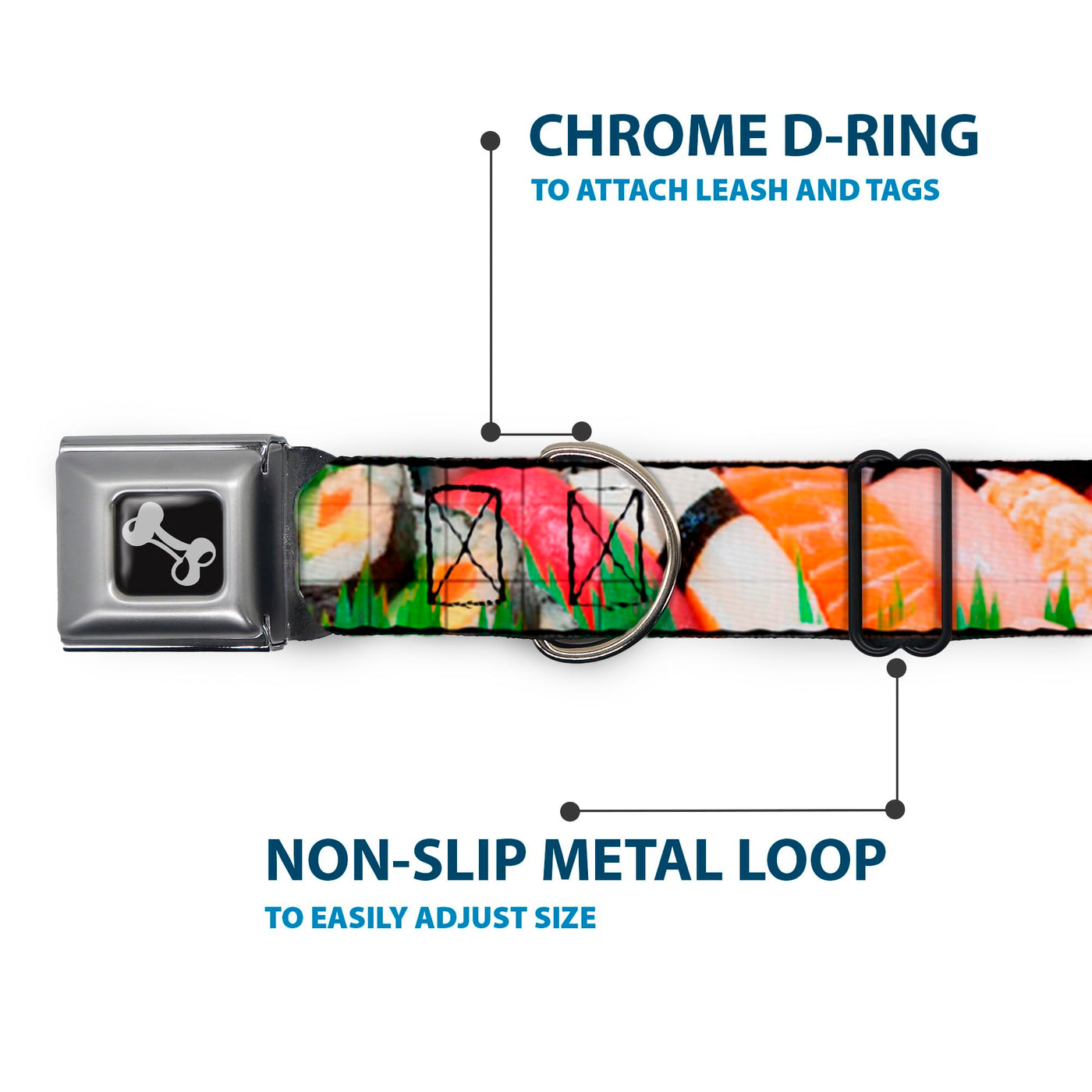Dog Collar Seatbelt Buckle Sushi Vivid 18 To 32 Inches 1.5 Inch Wide, Dc-W34595-Wl