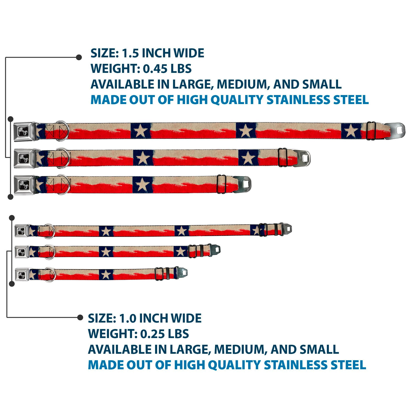 Dog Collar Seatbelt Buckle Texas Flag Close Up Distressed Painting 16 To 23 Inches 1.5 Inch Wide