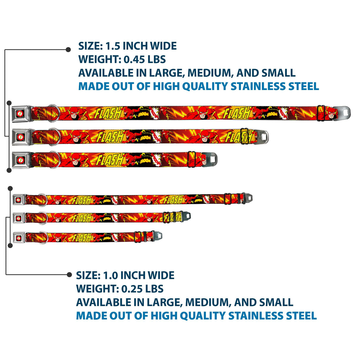 Dog Collar Seatbelt Buckle The Flash Boom Kaboom 18 To 32 Inches 1.5 Inch Wide