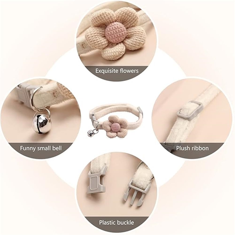 Puppy Collar With Bell Xs Dog Collar With Bell,Beige Flower Cat Collar With Bells Suede Girl Cute Fancy Puppy Collar With Bells For Xxs Xs Tiny Little Kitten Pet Female Dogs,Neck 8-12 Inch One Size Xs: Adjustable Xs Dog Collar With Bell Is For Neck 8-12(20-30Cm). Note: Please Leave Only 2 Finger Between The Collar And Cat Neck Material Soft: The Puppy Collar With Bell Is Made Of Plush Material,Creating An Adorable And Stylish Look For Your Cat. It'S Not Just A Cute Accessory, But Also Practical With A Bell Attached, So You Can Always Locate Your Feline Friend,More Safer Fashion Design: The Small Cat Collar With Bell Have Knitted Flowers. That Is A Variety Of Color Options. It Makes Your Cat More Visible Cute Fancy And Beautiful Durable Buckle And Detachable Bell: The Cat Collar With Bell Buckle Is Made Of Abs Plastic. Easy To Put On And Take Off,Sturdy And Durable. The Clasp Will Quickly Release By You. If You Don'T Like The Bell, You Can Remove It Wide Range Of Applications: Small Dog Collar With Bell Are Nice For Small Pets To Wear In Various Occasions, Such As Daily Party, Birthday, Pet Theme Party, Daily Wear, Walking, Traveling, Running And So On, Giving Them Charming And Chic Look