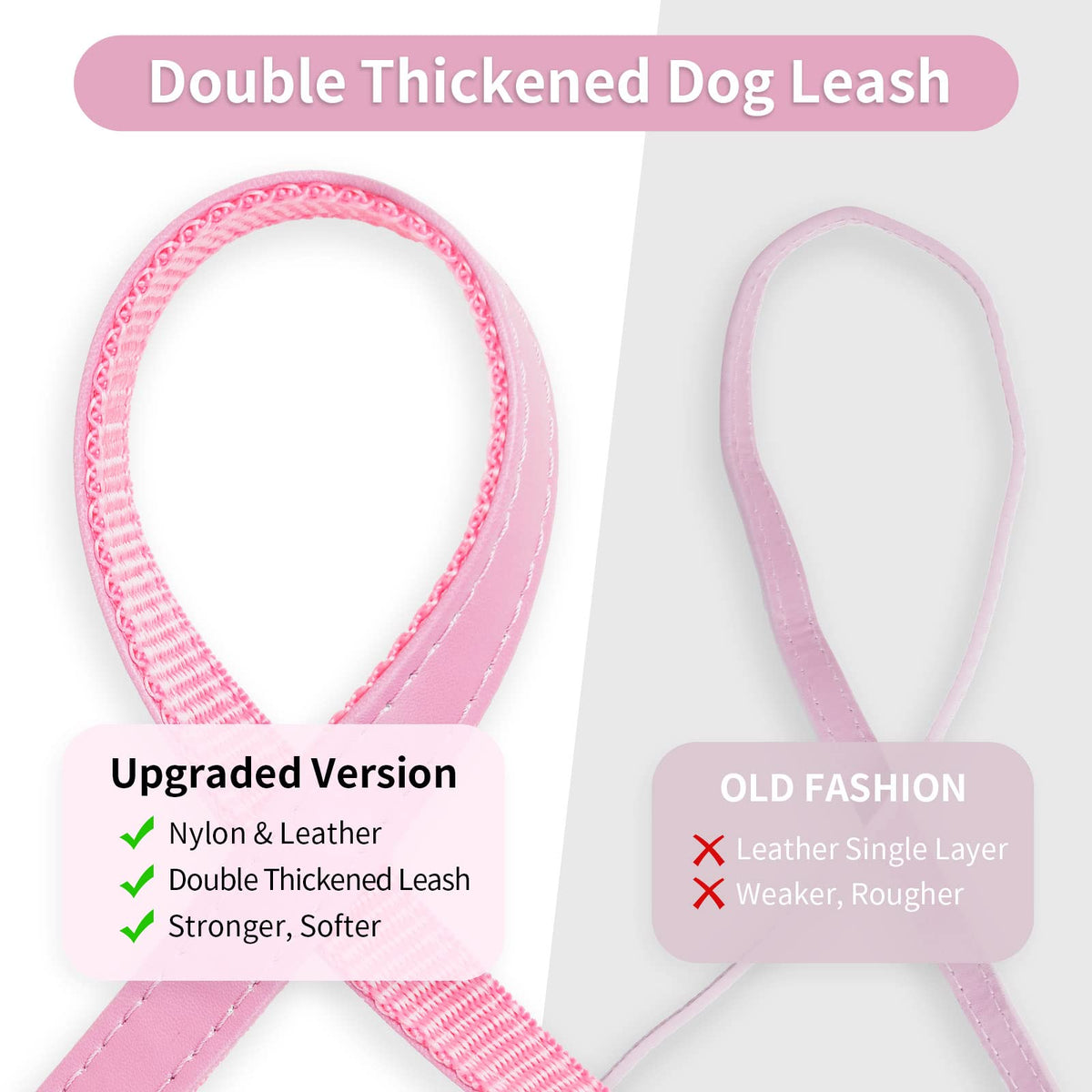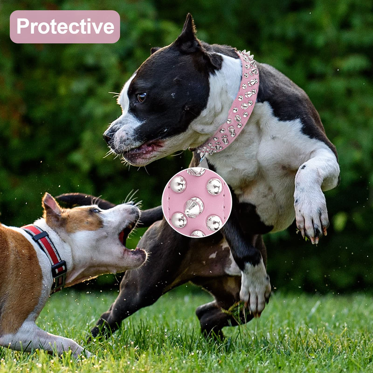 Epesiri Spiked Studded Leather Dog Collar & Leash, Pink, XXL (18.9-20.9), Durable PU Leather for Pit Bull & Large Pets