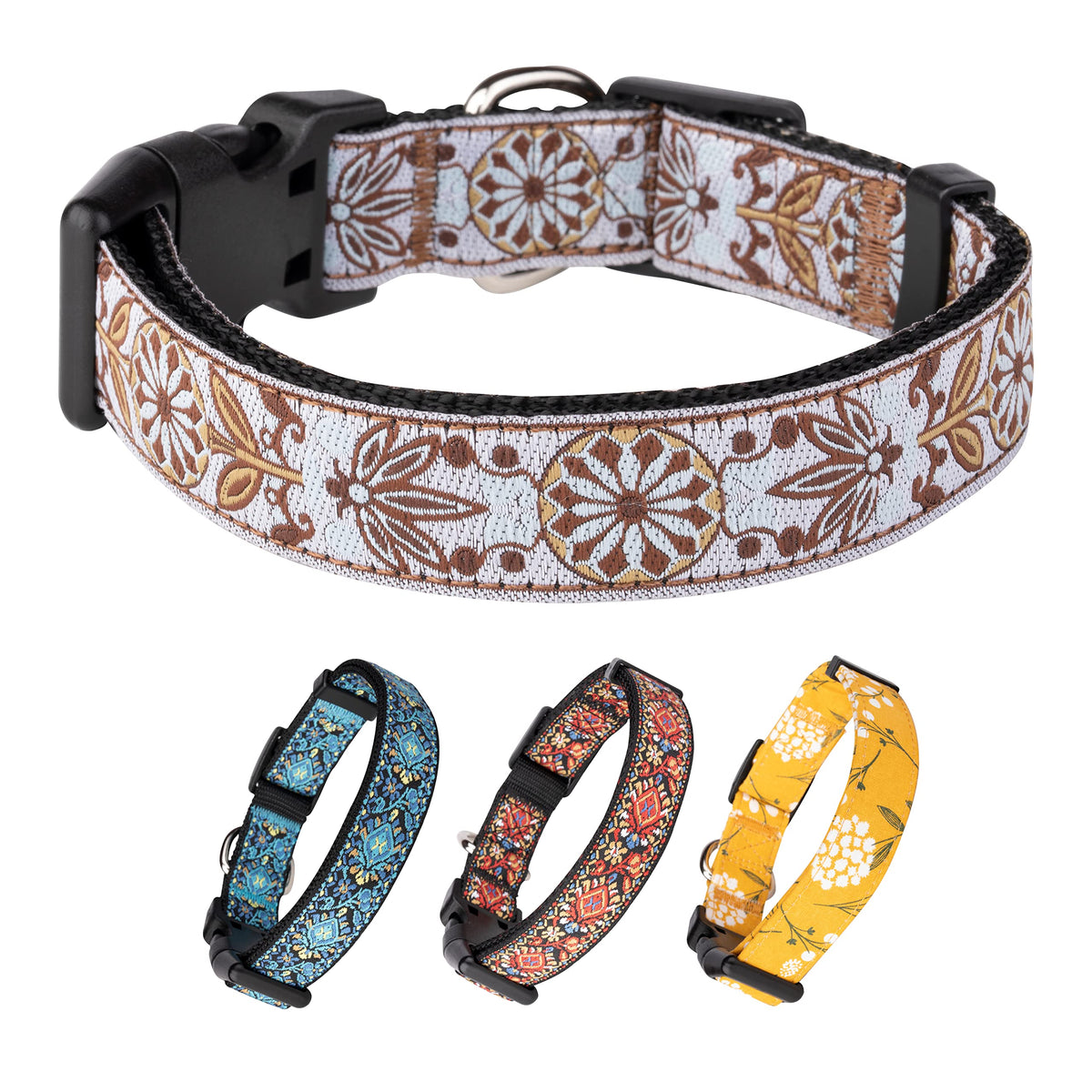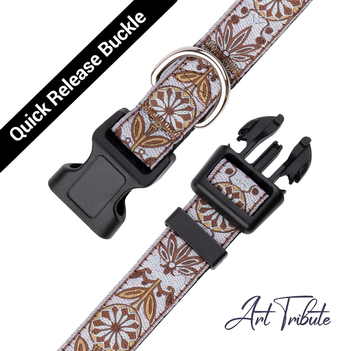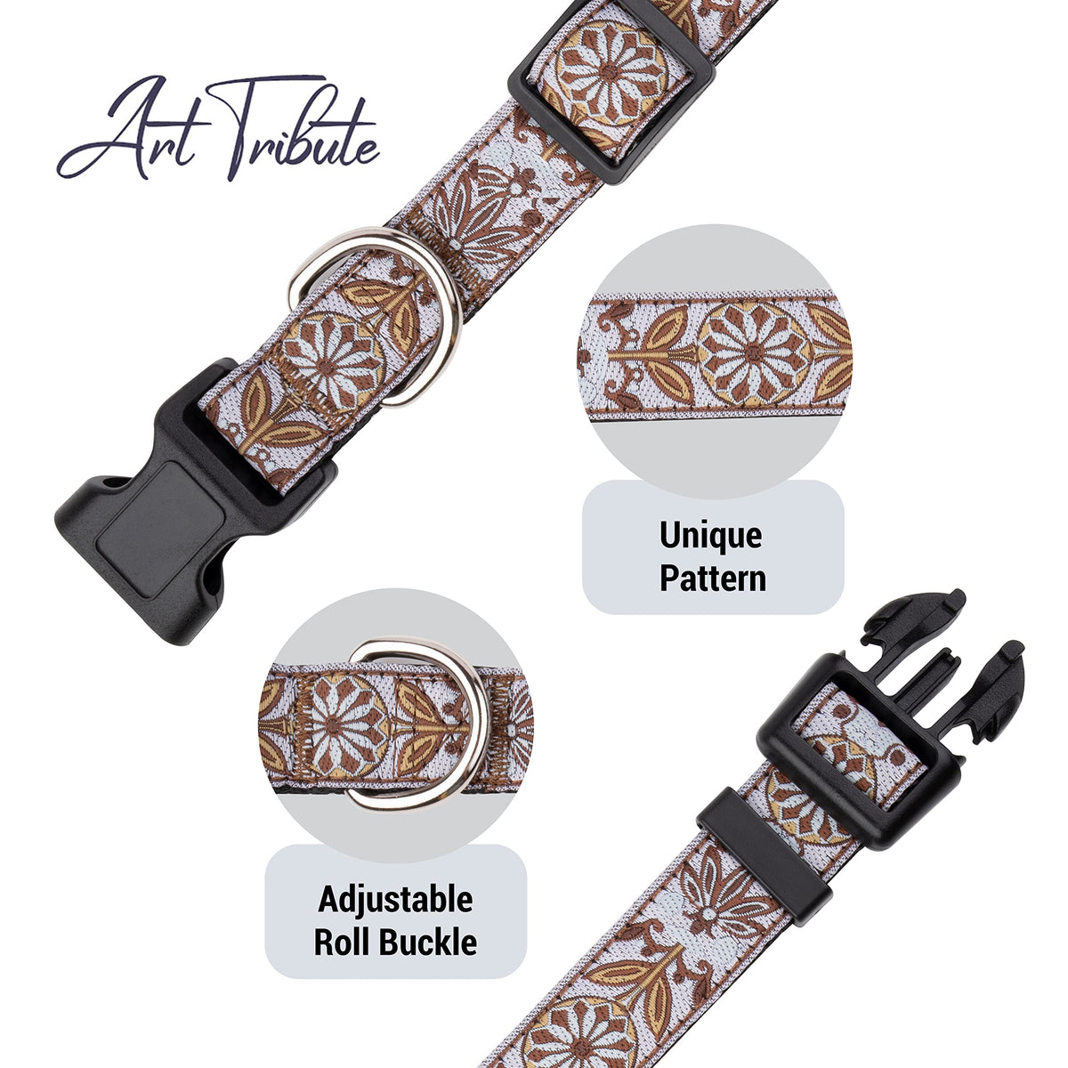 The Cutest Art On Your Dogs Collar! Gone Are The Days Of The Boring Dog Collar. Getting Ready For Walks, Hikes And Exercise Has Never Been This Much Fun When Its Time To Take Your Best Friend On The Daily Walk, Slipping On The Art Tribute Designer Dog Collar Is A Breeze. A Quick Click And Youre Ready To Go. Best Quality Materials We Use Only The Very Best And Strongest Nylon For The Pattern Printed Dog Collar, Extra-Durable Plastic For The Side-Release Buckle And A Carbon Plated D-Ring To Which You Attach The Leash. These Materials, Plus The Highest Standard Of Manufacturing Processes And Stitching, Ensure A Collar Which Will Withstand The Antics Of Even The Toughest Dogs. Dont Stress The Dirt Even If Your Dog Loves To Mess Around In The Mud, Dig Holes Or Go For A Quick Swim, Have No Fear. This Pretty Dog Collar Is Machine Washable And Will Look Like New, Ready For The Next Adventure. Available In 4 Sizes * Small - 10-15 Long X ? Wide Breeds: Cavalier King Charles, Pekingese, Miniature Schnauzer, Pug, Scottish Terrier * Medium - 12-18 Long X ? Wide Breeds: Beagle, Border Collie, Boston Terrier, English Bulldog, French Bulldog * Large - 15-22 Long X 1 Wide Breeds: Boxer, Dalmatian, Golden Retriever, Labrador Retriever, Weimaraner * Extra-Large - 19-26 Long X 1 Wide Breeds: Bernese Mountain Dog, Great Dane, Mastiff, Rottweiler, Saint Bernard. Pick Your Favorite Vibrant Design Choose From Our Range Of Geometrics And Florals And Let Your Dogs Personality Shine As He/She Struts Their Stuff On Their Daily Walk Or Playtime In The Dog Park. Let Your Fur Baby Shine And Stand Out. Even The Toughest Looking Dog Looks Endearing With One Of These Colorful Collars. Buy Yours Today And Enjoy A Lifetime Guarantee And Worry-Free Walking With Your Pet.