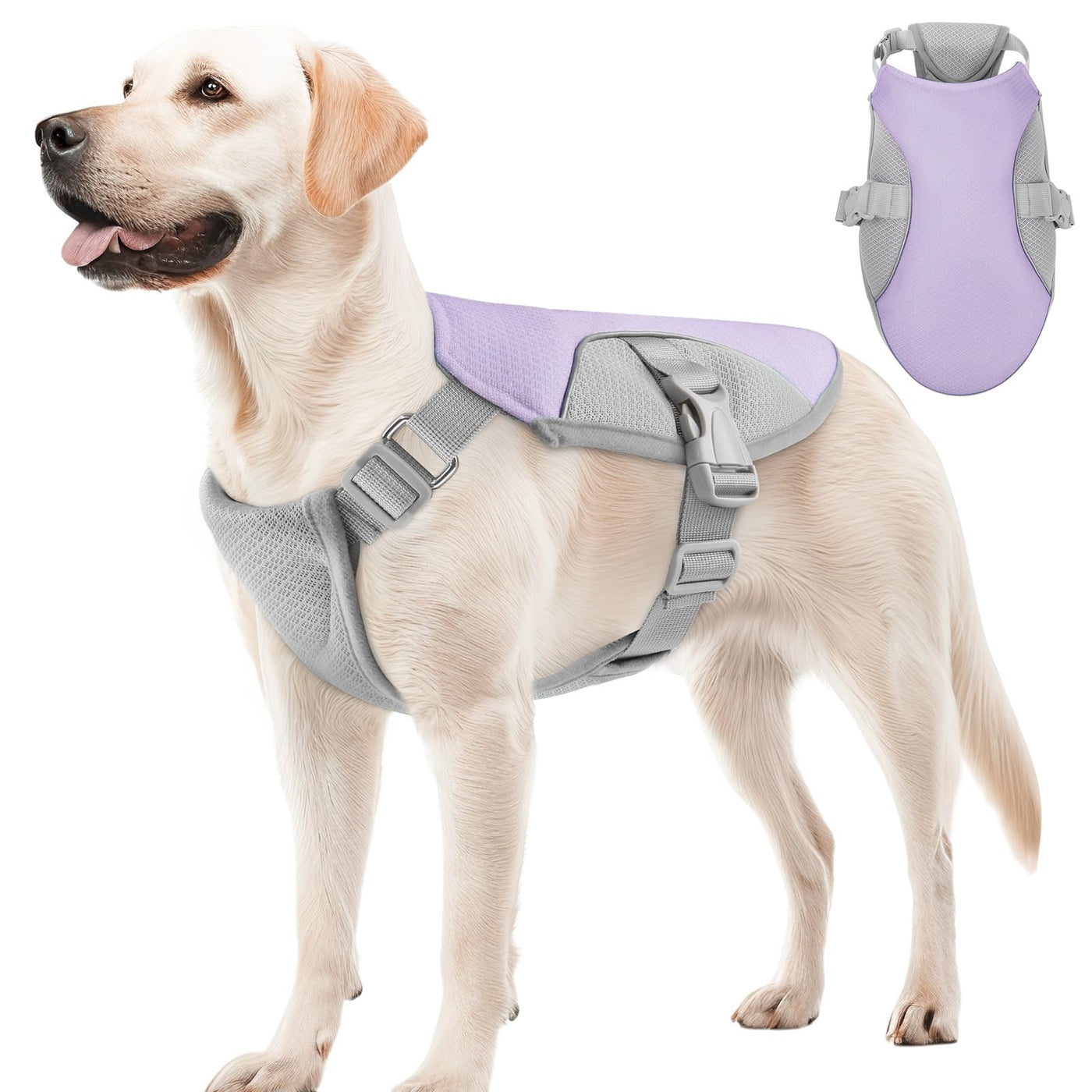 Dog Cooling Vest Harness Uv Protection Pet Cooler Jacket With Adjustable Buckle For Summer Beach And Hiking Lavender Purple-Larg