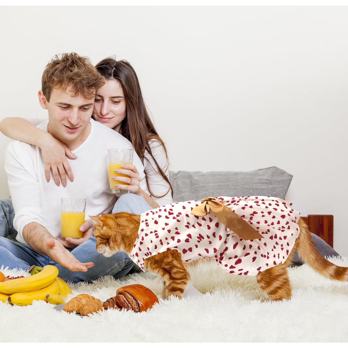 Make Your Pet Shine This Valentines Day With This Elegant Cream White Dog Dress, Adorned With Vibrant Red Heart Prints And A Luxurious Golden Satin Bow. Designed For Both Style And Comfort, This Outfit Is Perfect For Special Occasions Like Valentines Day, Holiday Parties, Or Photoshoots. Crafted From Soft, Breathable Fabric, This Dress Ensures Your Pet Stays Comfortable While Looking Their Best. While The High-Quality Material Allows For Repeated Use. Available In Three Sizes (S: 6-7 Lbs, M: 8-9 Lbs, L: 11-13 Lbs), It Provides A Snug And Secure Fit For Small Dogs And Cats. Whether Youre Celebrating A Holiday, Attending A Party, Or Taking Festive Photos, This Dress Adds A Romantic And Adorable Touch To Your Pets Appearance. For Sizing Or Fit Inquiries, Our Customer Service Team Is Here To Assist You. Let Your Pet Celebrate Valentines Day In Style!