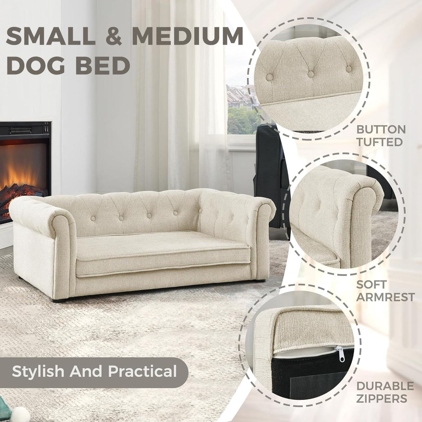 Dog Couch For Medium Dogs Up To 50 Lbs, 29 W Memory Foam Dog Sofa Couch With Dry Cleanable Fabric, Elevated Dog Couch Bed With