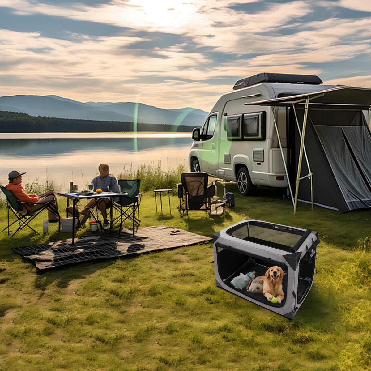 Xvishx Dog Crate,30X21X21 Inch Large Dog Crate For Large Or Medium Dogs, Portable And Foldable Design Of Dog Cage, Perfect For Travel Or Home Use, Dog Kennel With 3-Door And Durable Mesh Windows, Light Grey