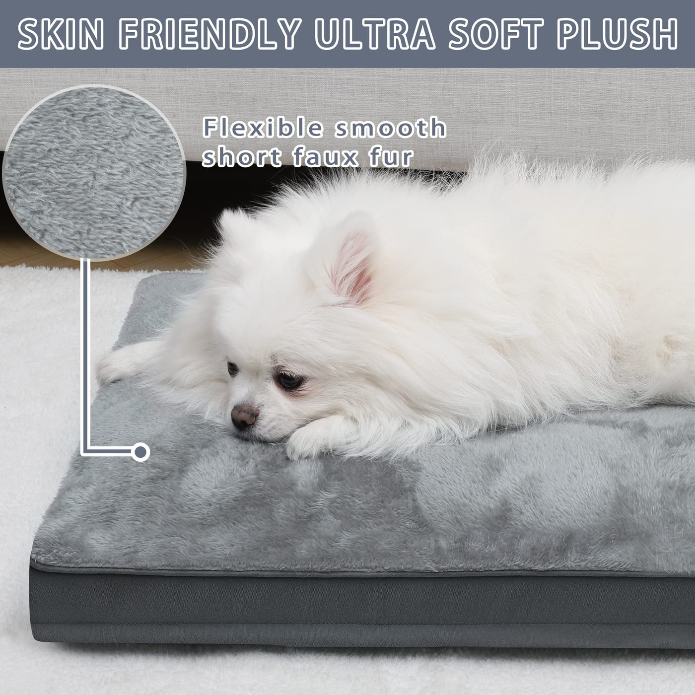 Dog Crate Bed Waterproof Deluxe Plush Dog Beds With Removable Washable Cover Anti-Slip Bottom Pet Sleeping Mattress For Large, Medium, Jumbo, Small Dogs, 23 X 17 Inch, Gray