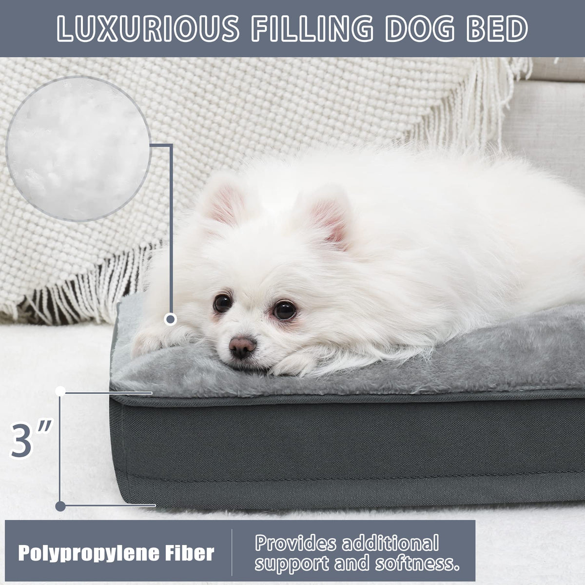 comfortable Surface: Dog crate bed has an ultra-soft velvet sleep surface with a luxury cozy flexible faux fur which is gentle on your pets nose and paws can provide a calming and anti-anxiety feeling The middle layer is made of TPU waterproof fabric it can prevent the penetration of pee and saliva Strong Support: The thick pet bed is filled with 3 inches of polypropylene fiber it can distribute the dogs weight evenly improve mobility and maximize the much-needed support and comfort for your aching puppy Removable cover: Washable dog bed comes with a premium L-shaped zipper it is smooth and durable making it easy to remove and it is machine washable for quick cleaning and easy care Durable cover keep the inner padded fiber from accidental damage Non-Slip Bottom: There are non-slip plastic dots on the bottom of the dog crate bed it can fix the position of the dog bed so as to bring a sense of security to the dog The bottom layer is made of chewy Oxford cloth which can effectively prevent pets from chewing and scratching moderately Size & Warm Tip: The size of this dog crate bed is 23L x 17W x 3H suitable for dogs up to 20 lbs It is arriving as a vacuum-packed bed in a box please let it lay flat for up to 24 hours before using