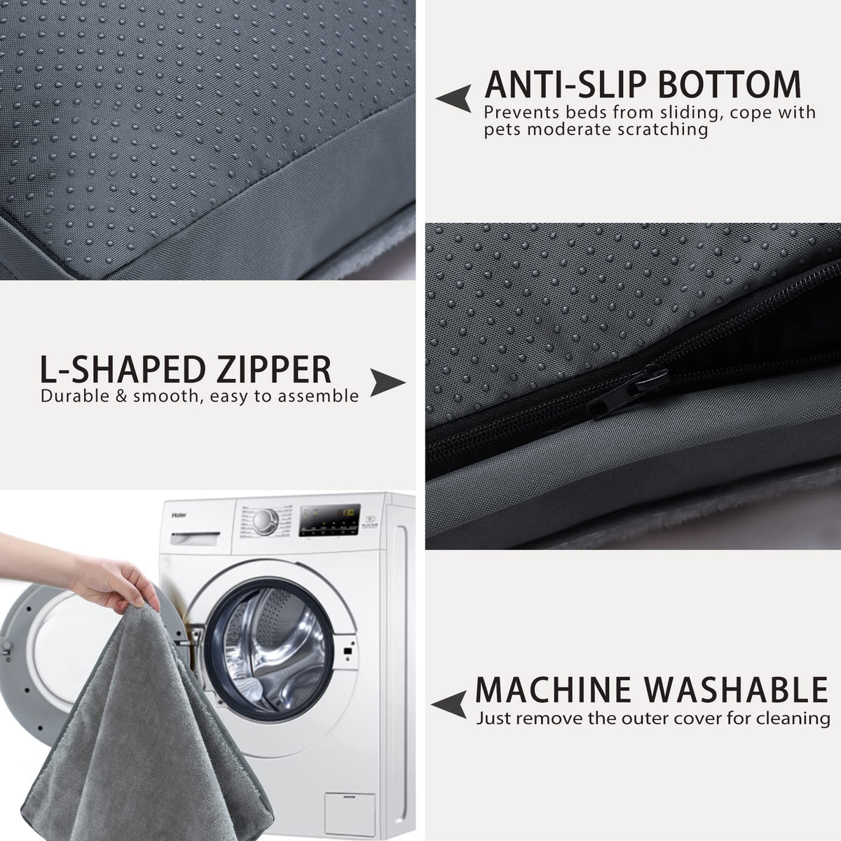 Q: Is the cover of the dog bed removable and washable?A: Yes, the Dog Crate Bed features a premium L-shaped zipper which allows for easy removal of the cover, and it is machine washable for convenient cleaning.