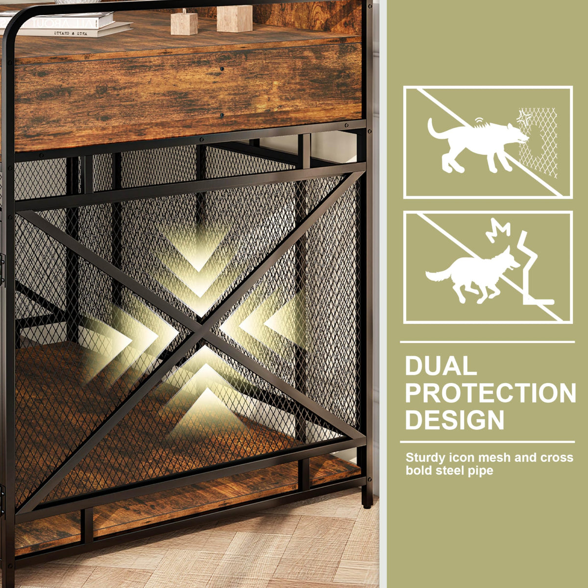 Furniture Dog Crate with 3 Drawers: Introducing the Fulhope dog crate furniture, designed to blend seamlessly into your home while offering a safe and stylish space for your furry friend. This versatile dog crate furniture doubles as a stylish side table or coffee table with built-in storage drawers for pet supplies or household items. Spacious & Secure Crate for Large Breed Dogs: The extra large dog crate has generous dimensions. Ideal for one large dog or two smaller dogs, this dog crate for large dogs ensures ample space for them to stretch out comfortably. Before purchase, be sure to measure your dog to guarantee they have enough room to move around, lay down, and sleep comfortably. XL dog crate furniture is perfect for this purpose. Chew-Proof & Heavy-Duty Construction: Built to resist even the most determined chewers. Constructed with sturdy metal wire mesh and reinforced with a robust metal cross bold, our dog kennel furniture is designed to withstand chewing and tearing, providing a secure space for your pet. Functional & Decorative Dog Crate: The dog kennel indoor is equipped with six adjustable feet to ensure stability while protecting your floors from damage. The discreet door latch and premium wood finish elevate this dog crate to a piece of furniture that complements your decor. It serves as an excellent extra large dog crate or medium dog crate. A perfect blend of style and functionality for your home. Easy Assembly & Exceptional Service: Our dog crate for large dogs comes with all components clearly labeled for quick and easy assembly. Were committed to providing excellent customer service-if you have any questions or need assistance, dont hesitate to reach out! This furniture dog crate is designed for easy setup and use, providing both comfort and style for your pet.